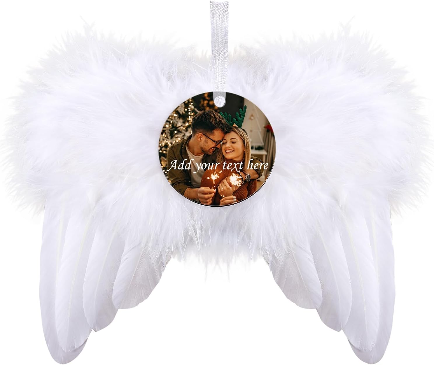 Personalized Christmas Ornaments 2025, Angel Wings Custom Photo Text Hanging Ornament Customized Christmas Tree Decorations Gift for Family, Kids, Friends, Couples, Wedding