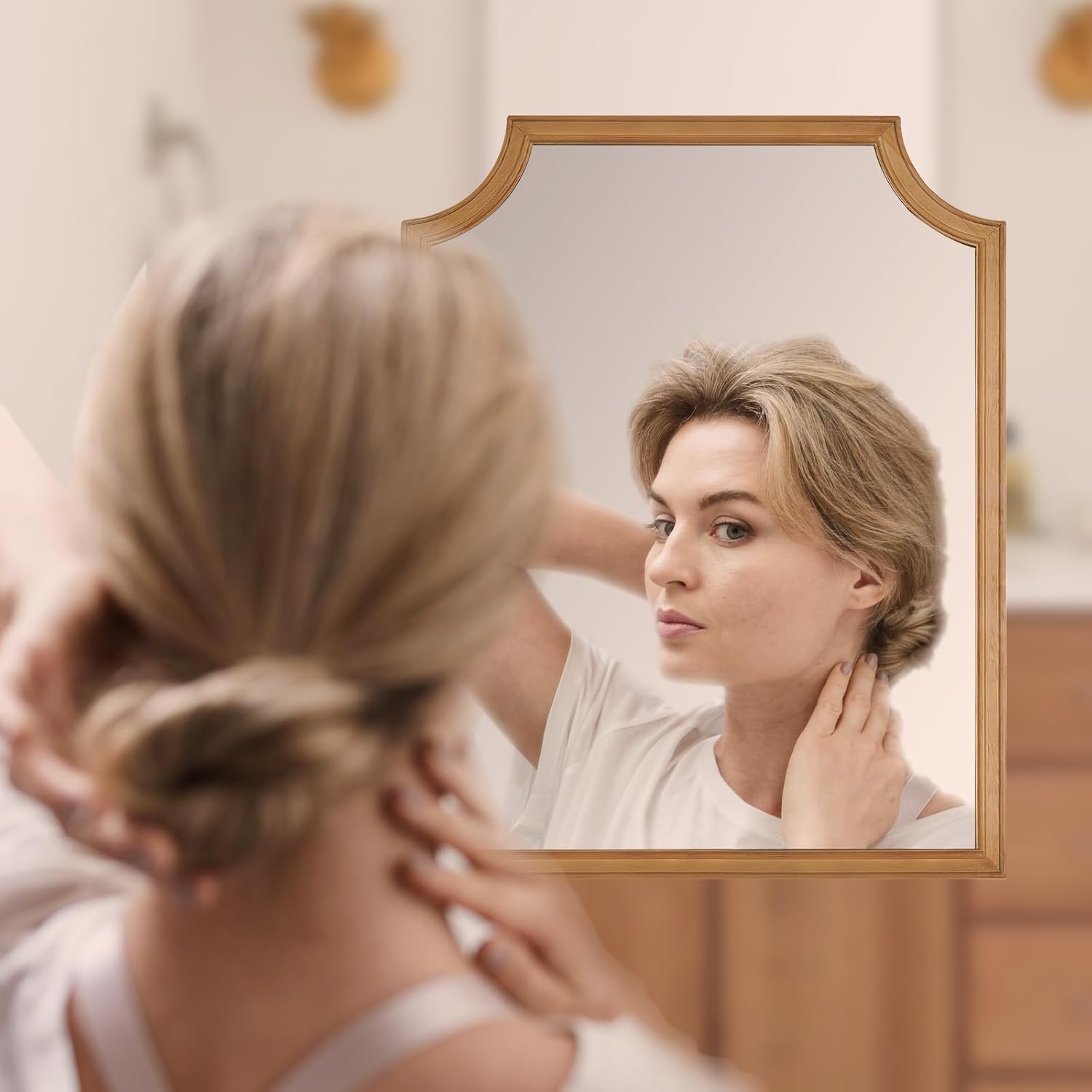 WallBeyond Scalloped Wood Mirror for Wall Decor 16x20 Inch Small Bathroom Vanity Rectangle Mirror for Hallway Bedroom Living Room(Natural)