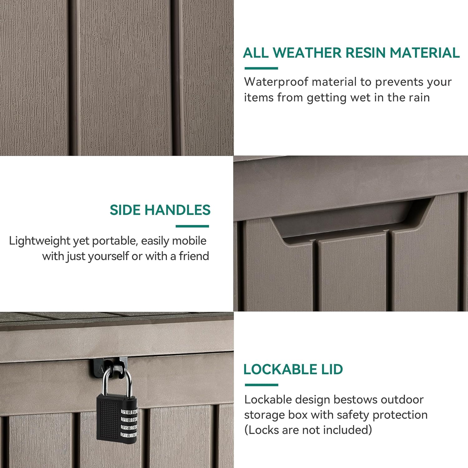- DURABLE STRUCTURE- This outdoor storage box is made using all-weather resin featuring a lockable lid that prevents the product from rusting; Safe for people and animals and can last for years to come (locks excluded)