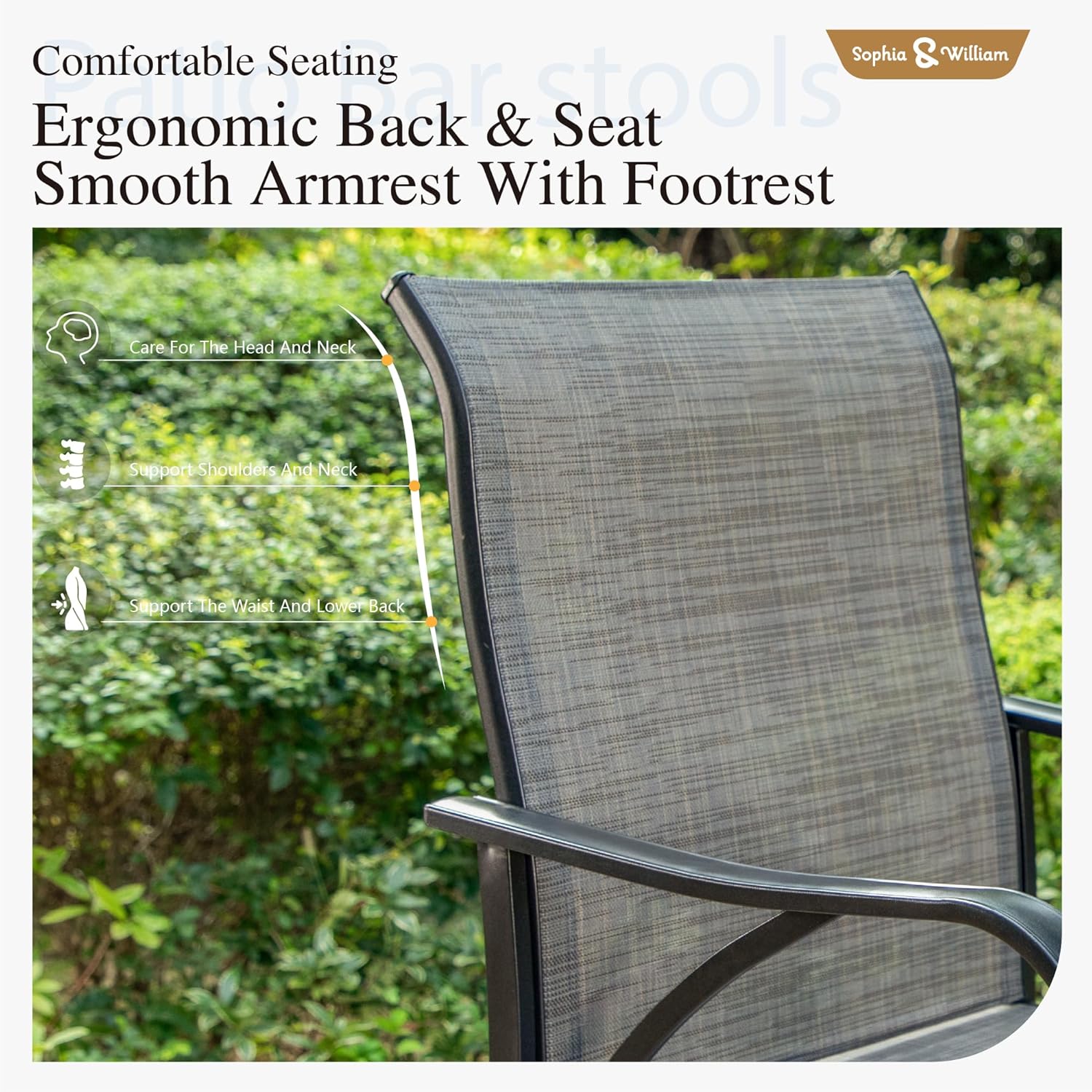- 【Supportive and Comfortable】Enjoy the ultimate comfort with our patio bar set featuring a supportive backrest, armrests and footrests, providing a relaxing and ergonomic seating experience for extended periods. Seat height: 30, weight capacity: 300 lbs. Table size: 66.9L x 35.4W x 39.8H