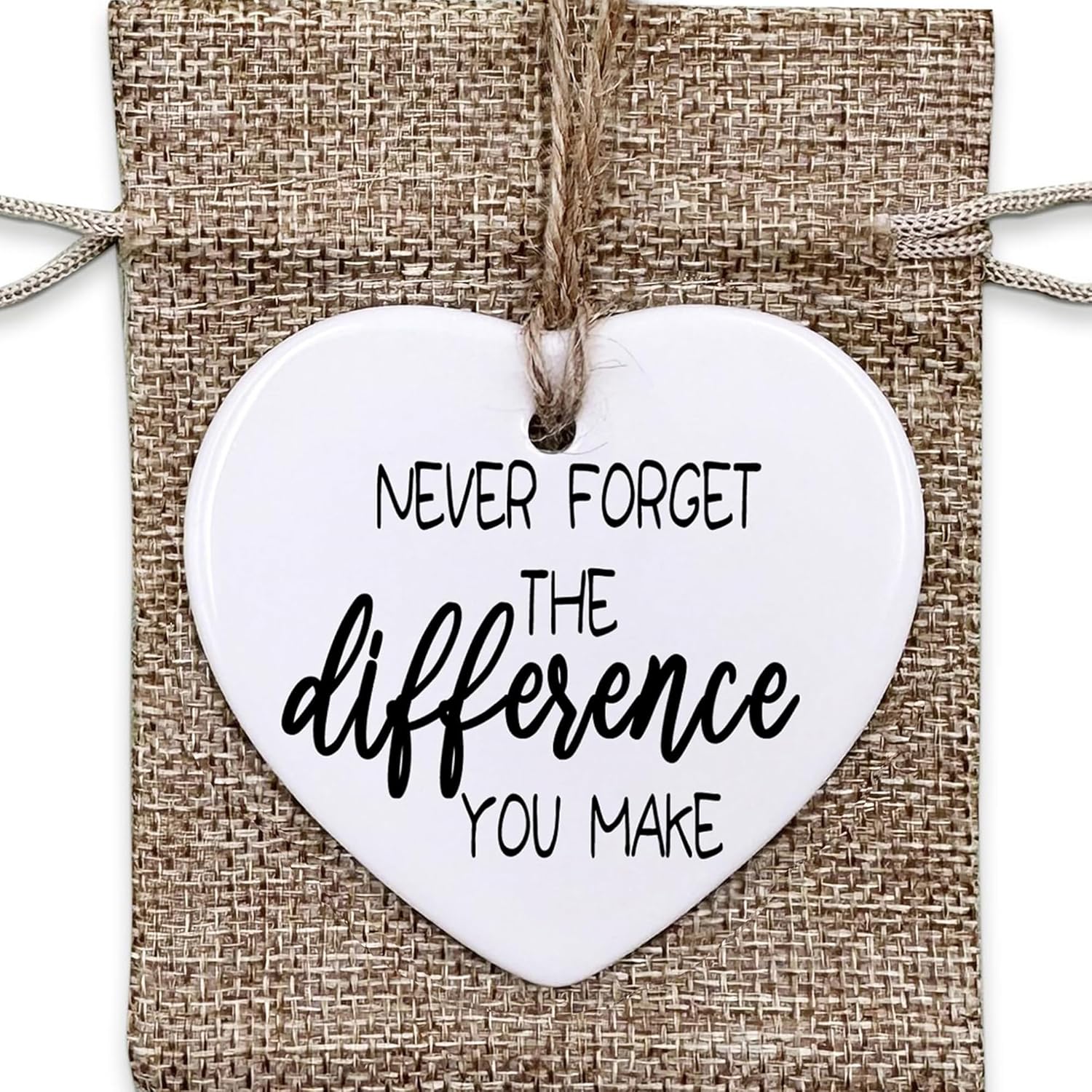 - 【Appreciation gifts for coworkers】This special ceramic ornament is a great keepsake gift with the words “Never forget the difference you make” to show your love and appreciation for any occasion.