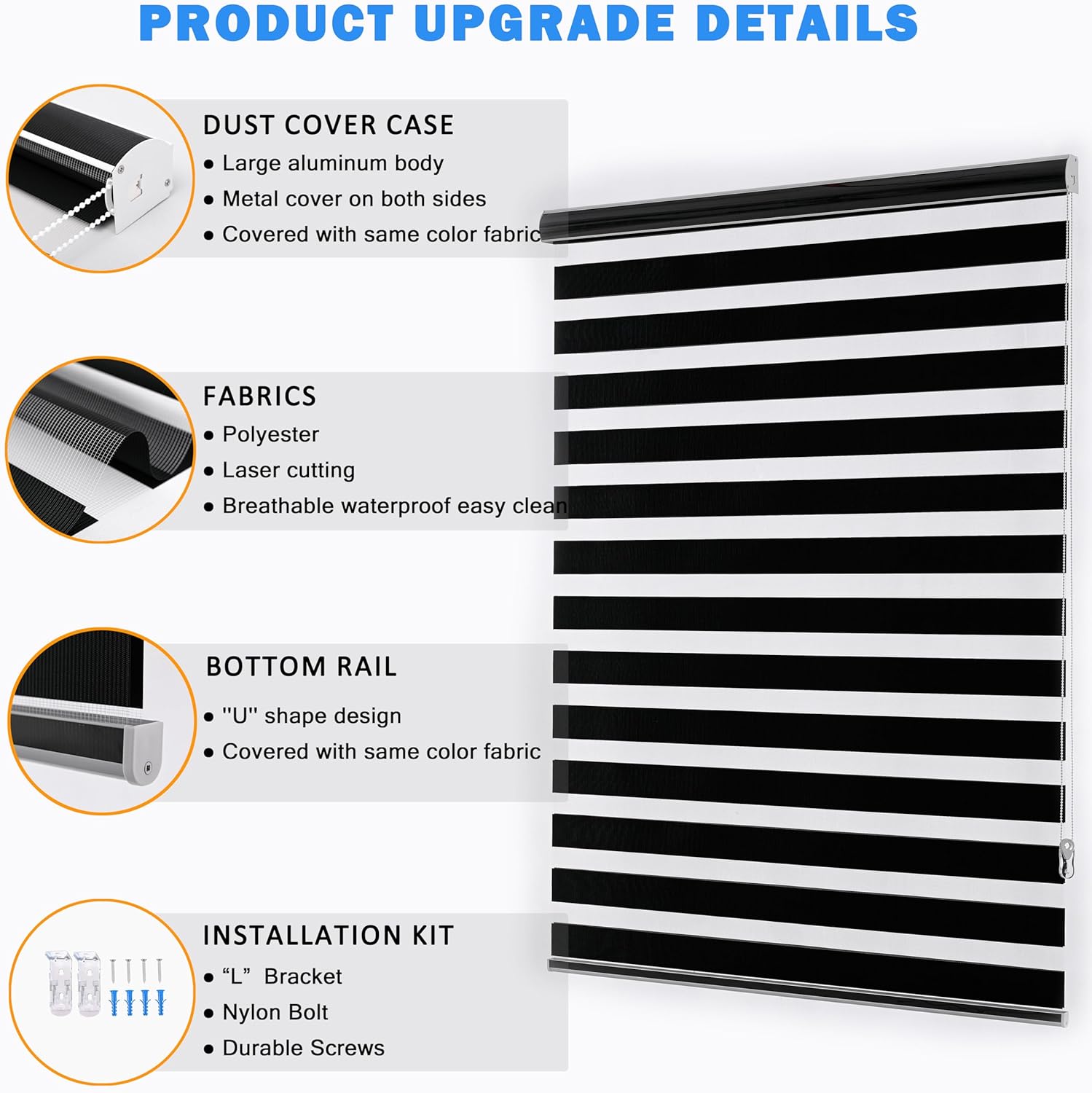 - Zebra Blinds for Windows with a premium polyester fabric - High-End Quality - Easy to install - Easy to clean,Black Color 56 inch Width.