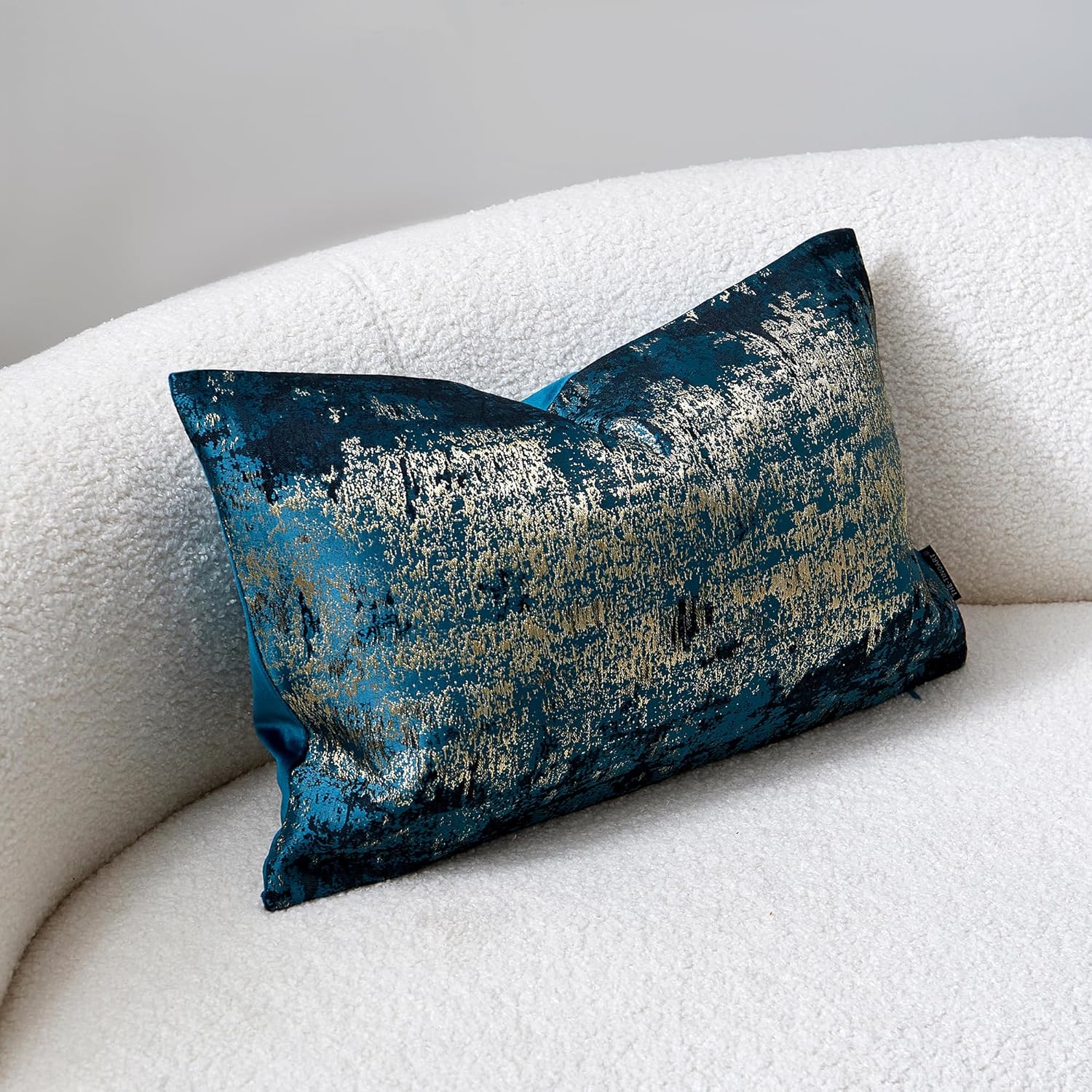 - Premium Jacquard & Velvet Pillow Cover : Crafted with luxe 70% polyester 30% viscose jacquard weave in Teal & Gold - a sophisticated blue-green hue with woven metallic gold threads that create a luminous, jewelry-like glow. The reverse features 100% polyester cream beige velvet in sumptuous cloud-soft texture. Two looks in one-Instantly elevates sofas, beds, or accent chairs from coastal cool to metropolitan glam.