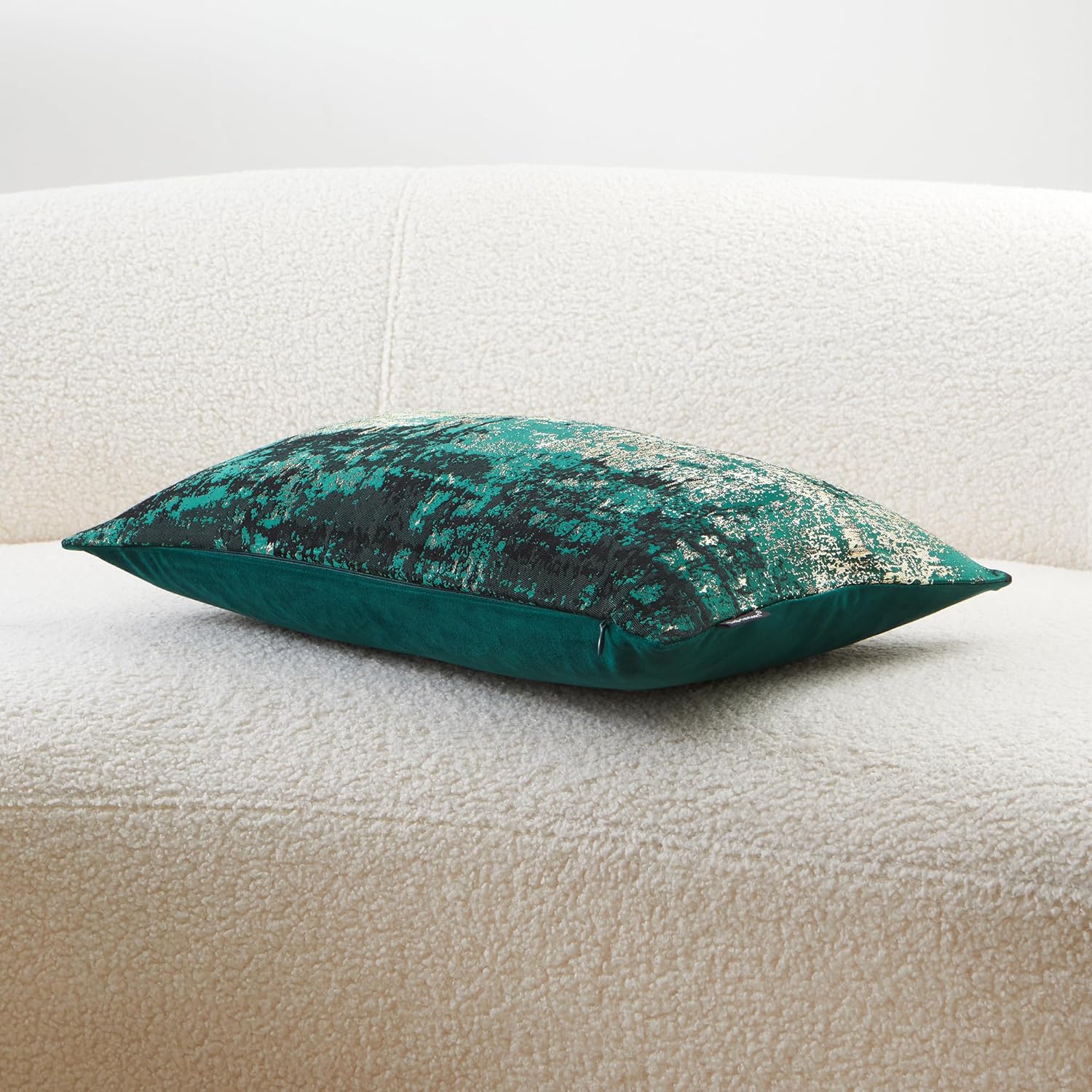 - Premium Jacquard & Velvet Pillow Cover : Crafted with luxe 70% polyester 30% viscose jacquard weave in Neon Moss Green - a vibrant, tech-inspired hue with woven gold threads that emit a sophisticated metallic radiance. The reverse features 100% polyester cream beige velvet in sumptuous cloud-soft texture. Two looks in one—Instantly transforms sofas, beds, or accent chairs from daytime chic to evening glam.