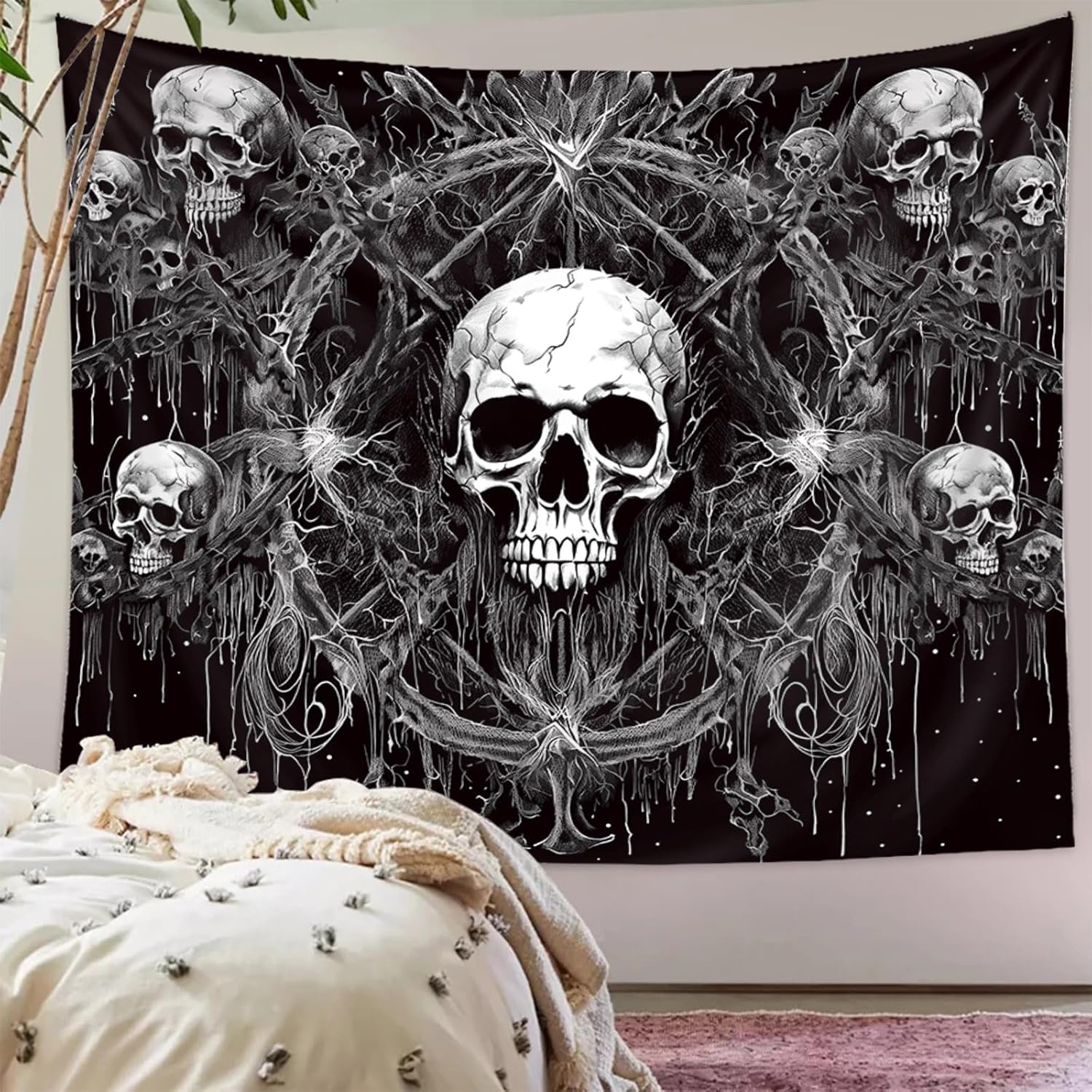 - Dark & Gothic: Made from high-quality black material, this Skull Tapestry adds a sleek and spooky touch to any room. Perfect for those who love all things dark and gothic.