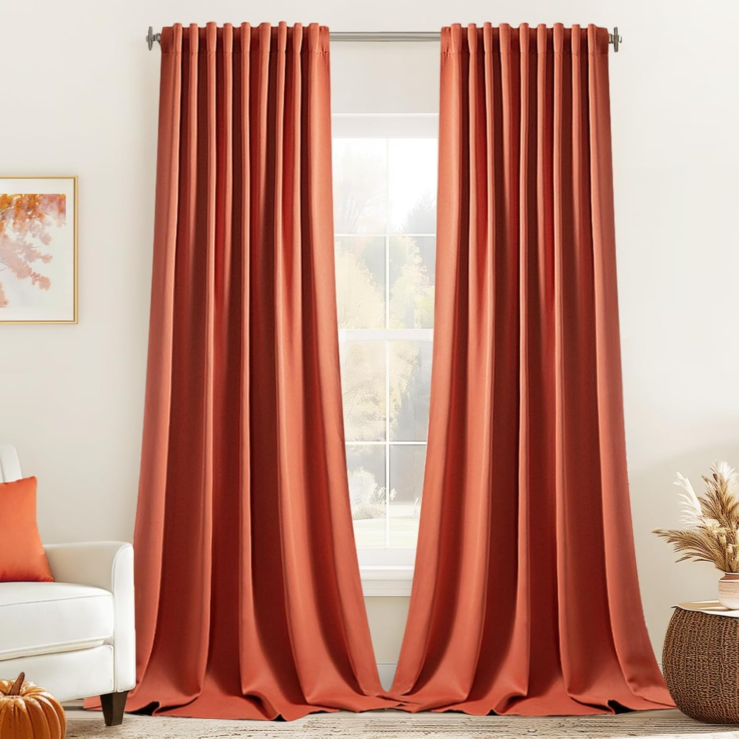 MIULEE Back Tab Burnt Orange Blackout Curtains 120 Inch Long 2 Panels Set for Living Room Bedroom Privacy, Fall Terracotta Rod Pocket/Pinch Pleated Extra Long Room Darkening Light Blocking Drapes