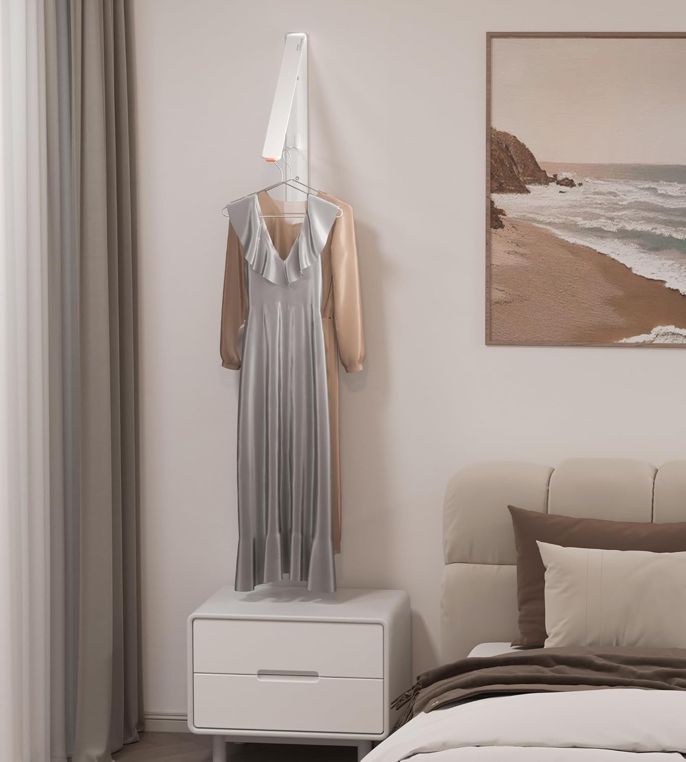 Dr.DJ Clothes Drying Rack Wall Mounted, Retractable & Foldable Clothes Hanger for Laundry Room Organization and Storage, Clothes Hanger Rack for Dorm, Closet, Balcony, Laundry Room(1P, Metal, White)