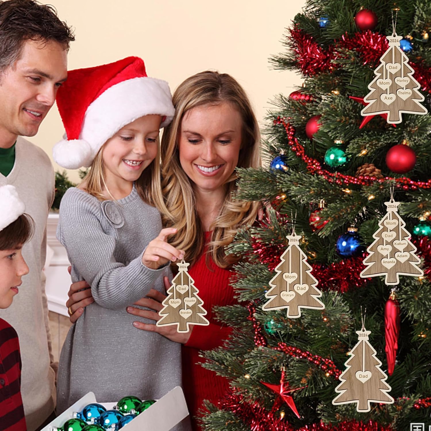 Personalized Christmas Ornaments 2025 with Family Names 1-7 Names Custom Ornaments for Christmas Tree Personalized Ornament Gifts