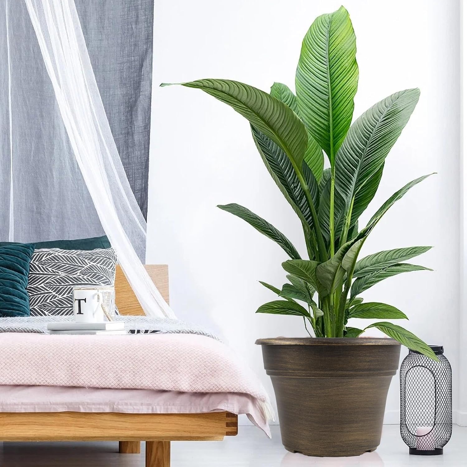 - 【TRADITIONAL DESIGN】Plastic planters for indoor plants with trays are designed in in dark gold colors & a classic look, which allow this pot to fit into any indoor & outdoor setting. With these golded flower pots, it could adds fresh, decorative flair to your home. Decorate your windowsill, desktop, shelf, bedroom, living room, kitchen, garden, office with our 16 inch large plastic plant pot.