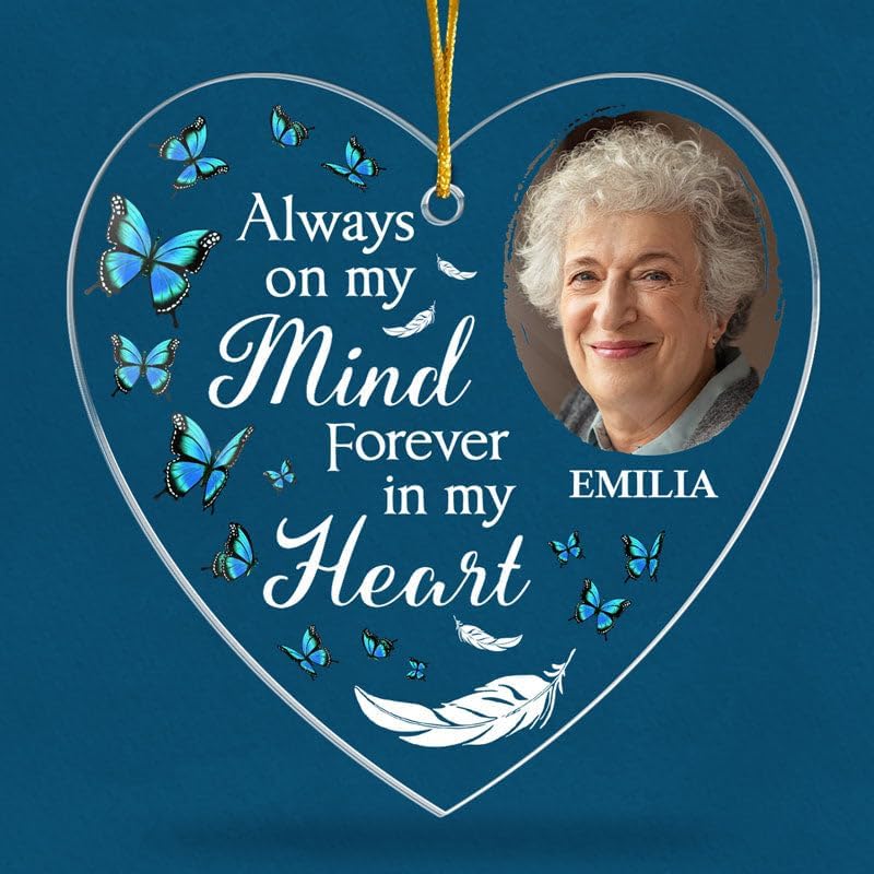 - π Memorial Christmas Ornament: The ornament is crafted from acrylic, measuring 3.9x3.9 in (10x10 cm) in size and 0.12 in (~0.3 cm) in thickness. It features a one-sided design. You can choose what is printed on these personalized Christmas ornaments! This ornament will be the best Christmas gift for your family members, memorial gifts for loss of loved one, gifts for grieving friends, thanksgiving ornaments for tree.