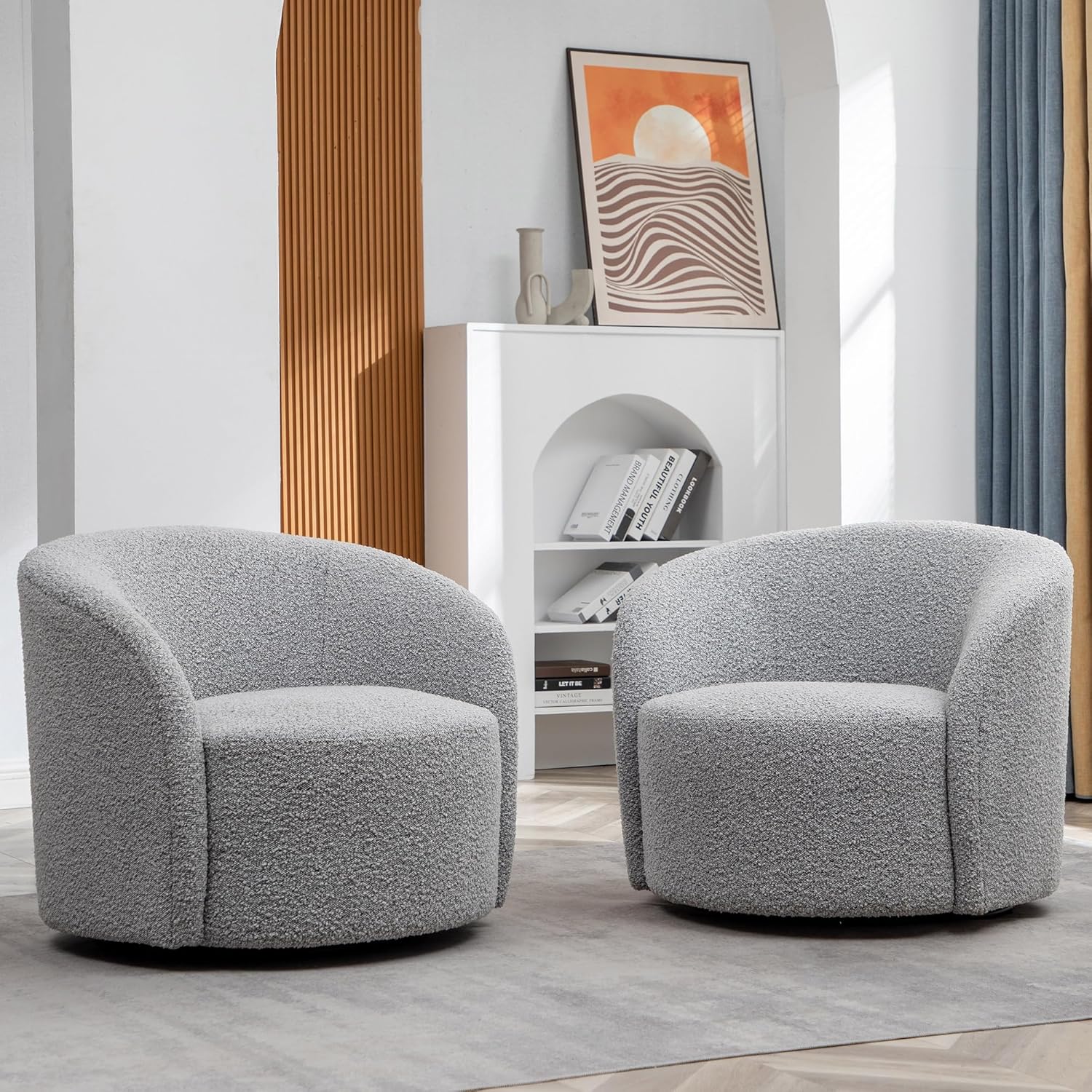 - HIGH-QUALITY BOUCLE UPHOLSTERY β This large Mid-Century Modern Swivel Barrel Chair is crafted with luxurious, popular boucle upholstery, providing a cozy, soft seating experience that instantly elevates your relaxation and comfort. Especially on cold days or when you are alone, bringing you the warmth of spring.
