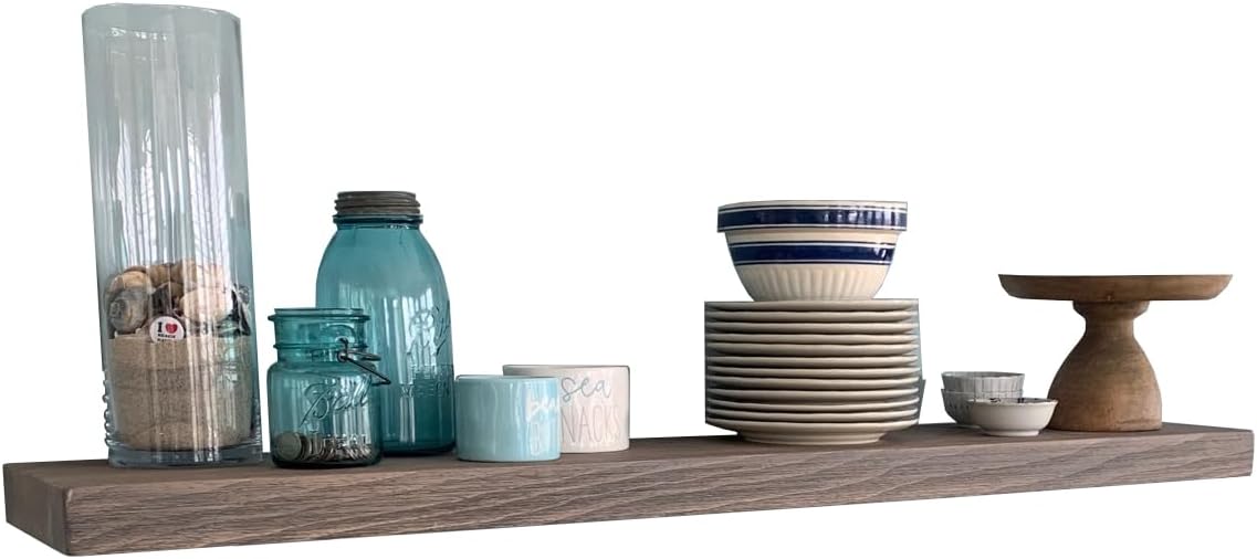 - Elevate Your Space with Rustic Charm: Transform your living room or any space with our large floating shelves for wall. These 60 inch floating shelf beauties, crafted from natural wood, add a touch of rustic warmth and provide ample display space for your cherished items.
