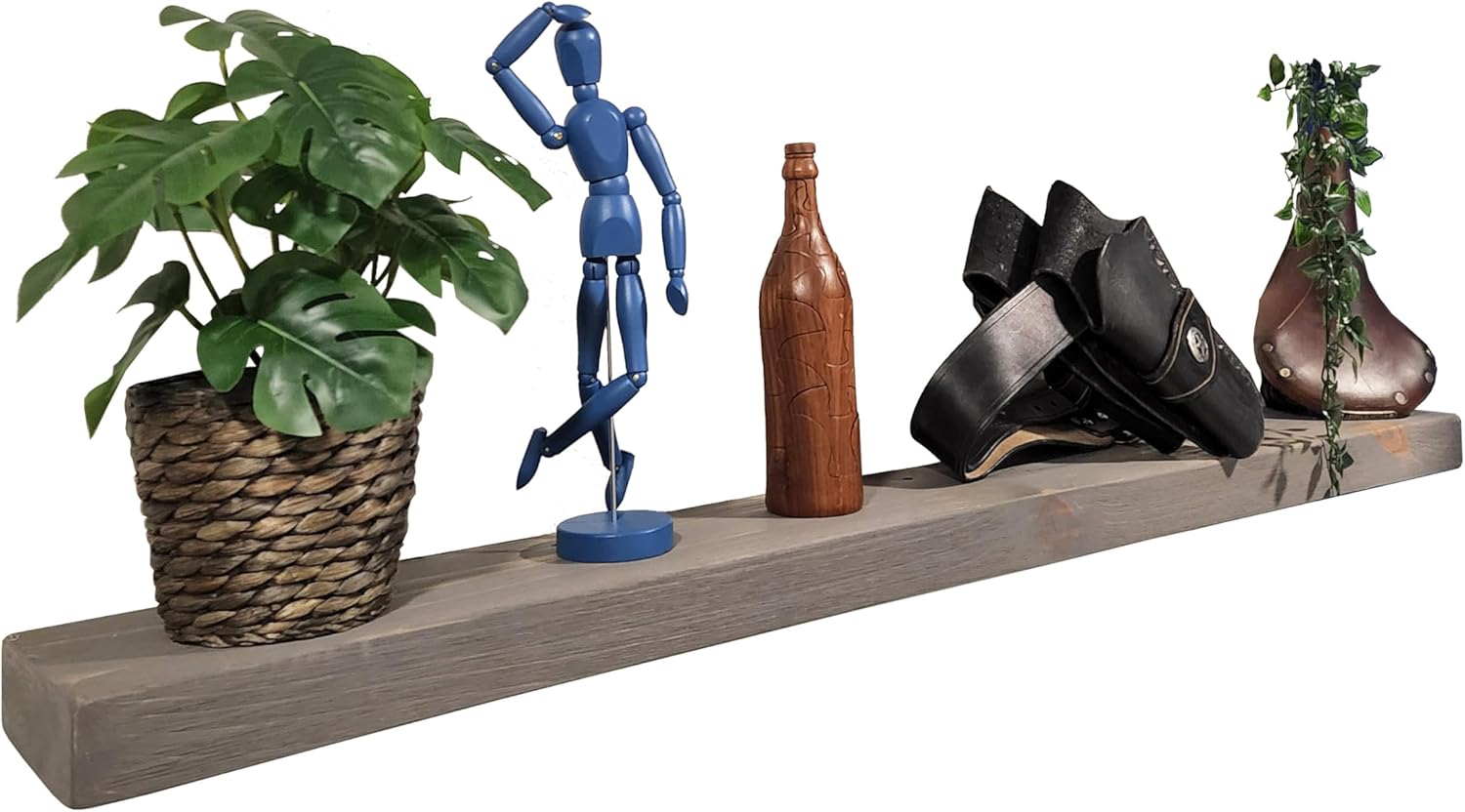 joelsantiques 60 Inch Wooden Floating Shelves for Wall - 60x6x2 in - Made of Natural Wood - Long Heavy Duty Rustic Wall Shelves for Bedroom - Perfect for Living Room, Kitchen - Grey, Gray