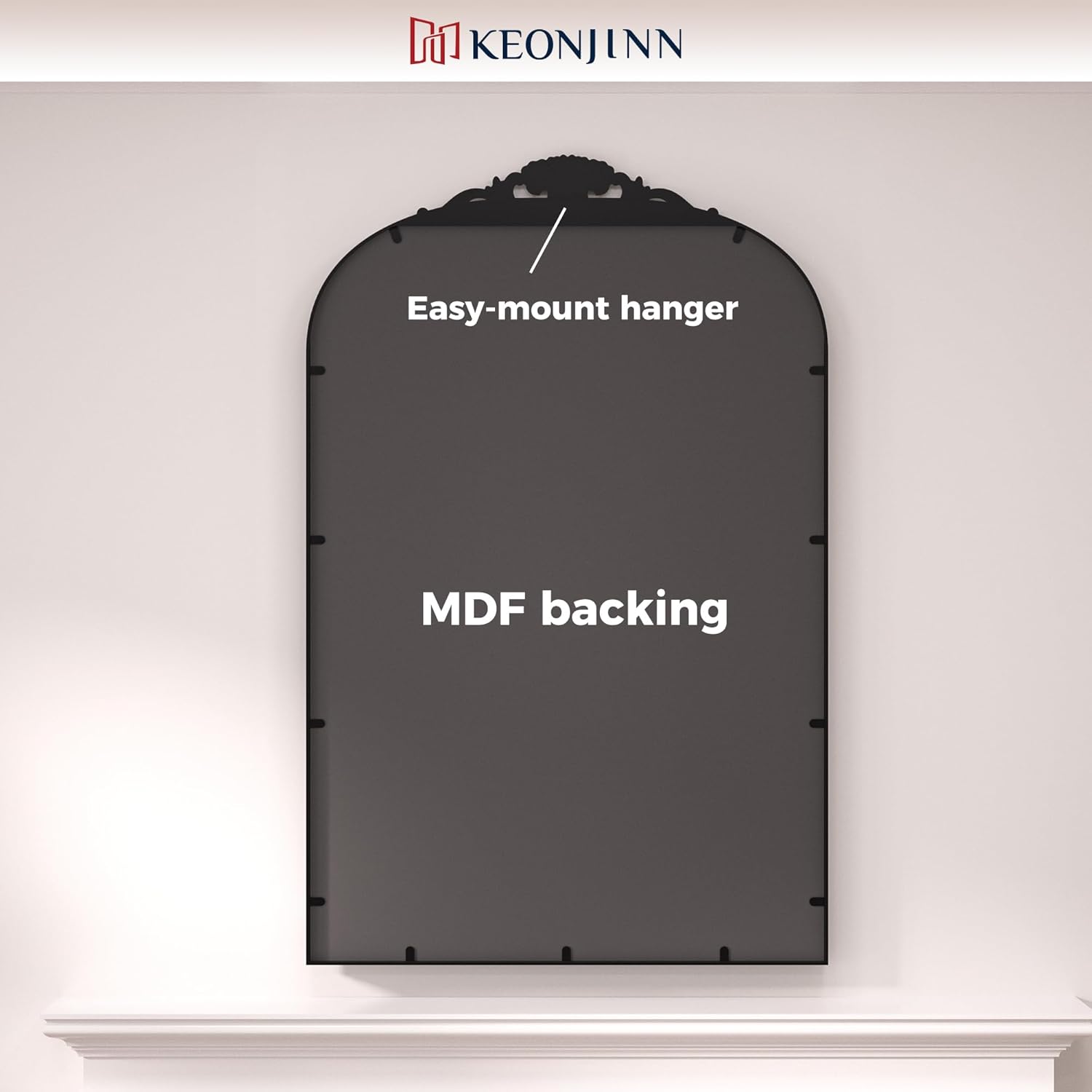 - 【Baroque-inspired Charm】 Keonjinn Black Antique Arched Mirror is a timeless piece designed to elevate your wall décor. Inspired by the opulence of the Baroque era, this mirror exudes historical charm with its graceful arched design and intricate wooden floral crown, creating a captivating focal point in any room.