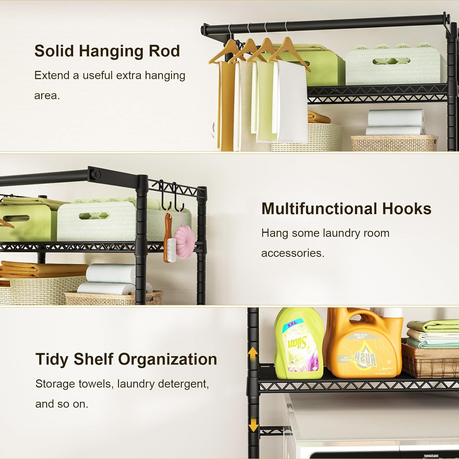 Ulif U11 Over Washer and Dryer Shelves, 3 Tiers Laundry Room Storage and Organizer Standing Shelf, Metal Freestanding Clothes Drying Rack, 33.9" W x 19.7" D x 77.6" H, Black