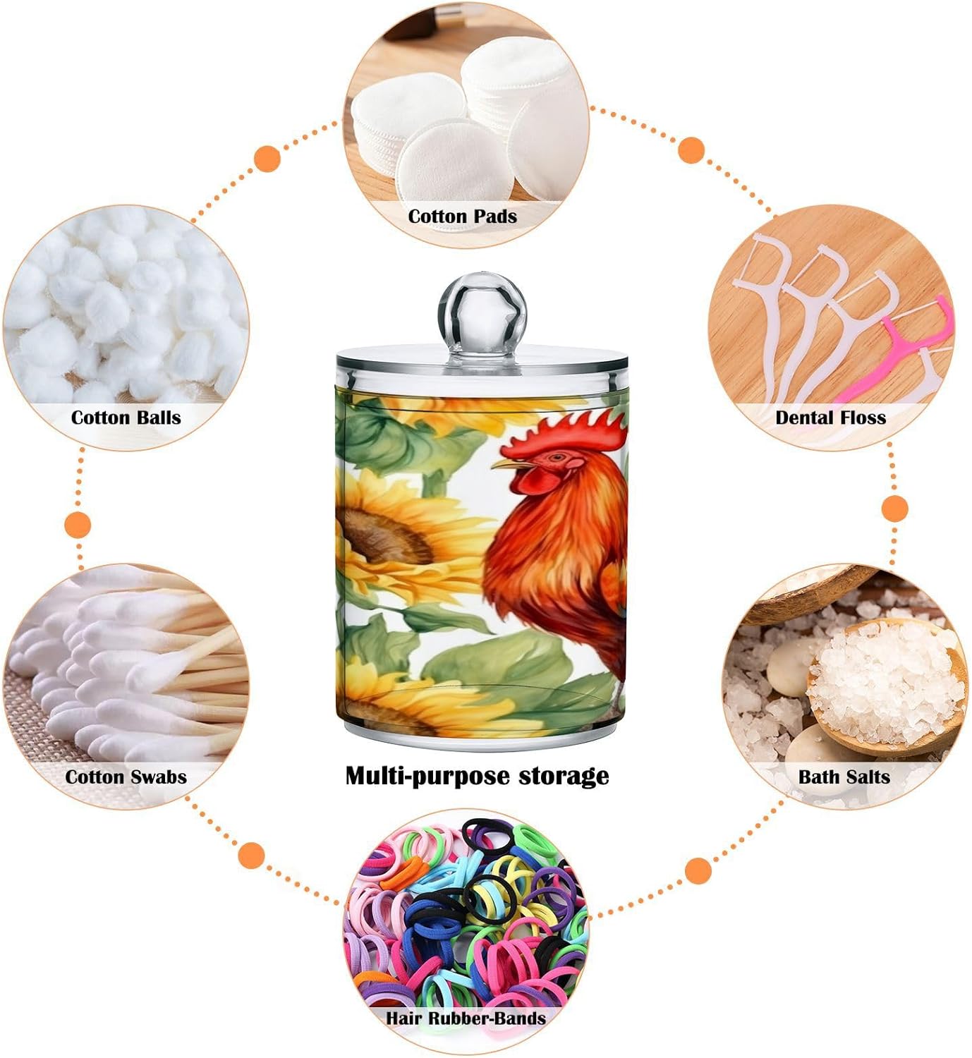 Sunflower Rooster 2PC Airtight Transparent Plastic Storage Jar, Food Storage Container Glass, Can Store Candy, Salt, Coffee Beans, With lid, Easy To Use
