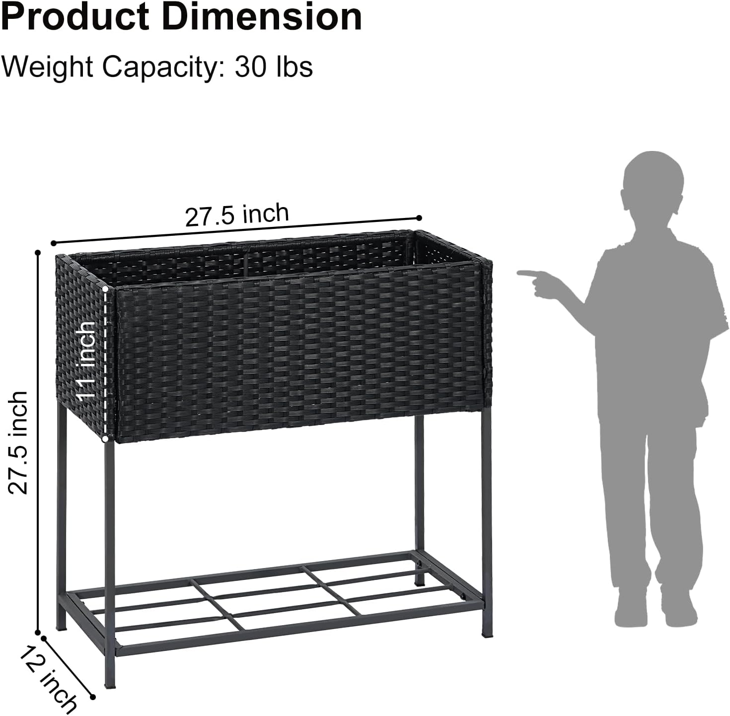 - Dimension: With a 27.5’’ L x 12’’ W x 27.5’’ H elevated planter that holds up to 2 cubic feet of soil, the planter box provides ample breathing and growing space for your vegetables and plants. Available in flat packaging, easy to assemble and with detailed instructions.