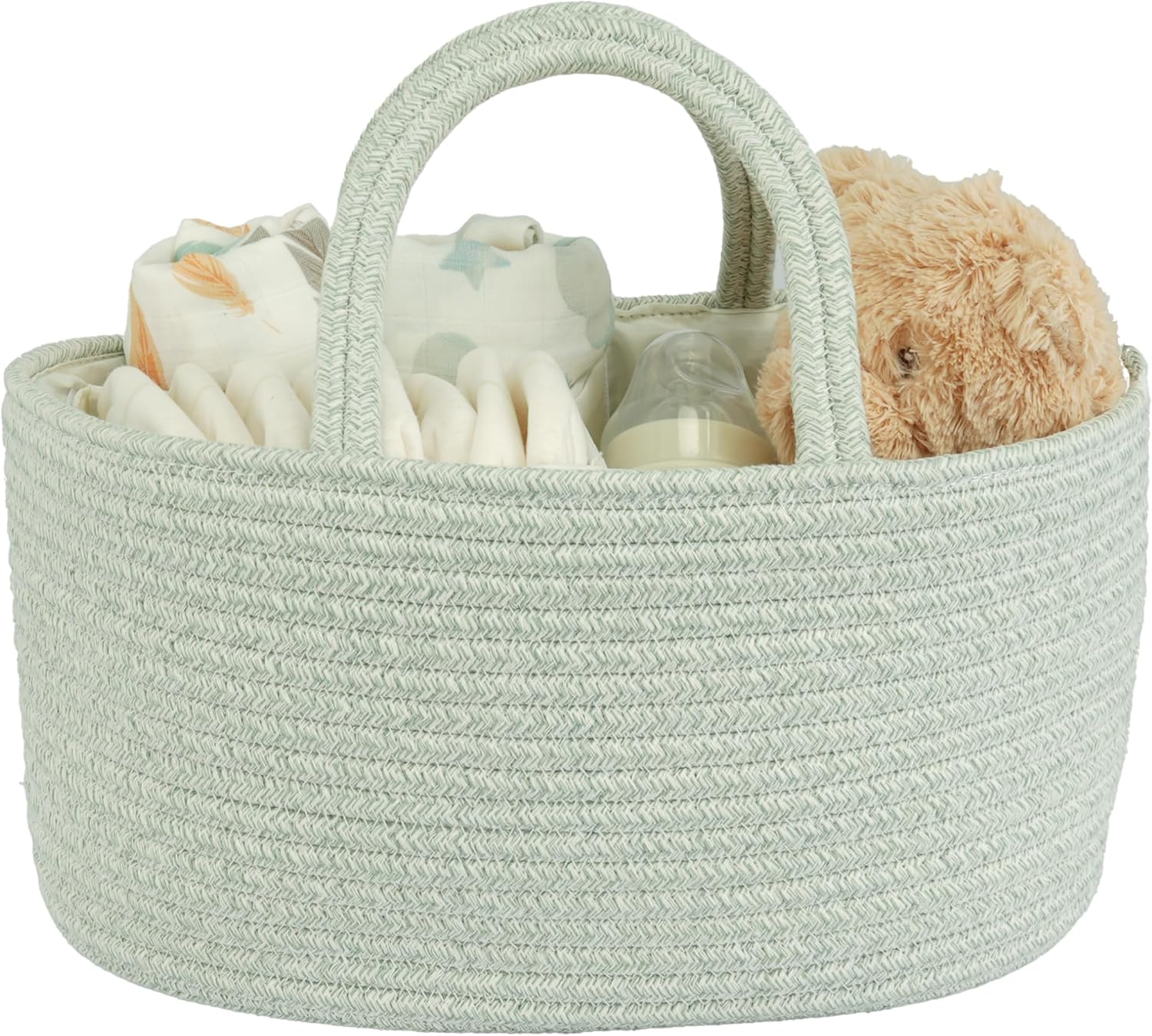 Diaper Caddy Organizer Cotton Rope Baby Basket Nursery Storage and Portable Tote Bag for Car Ideal Baby Shower Gifts and Registry Must-Have for Newborn Essentials light green