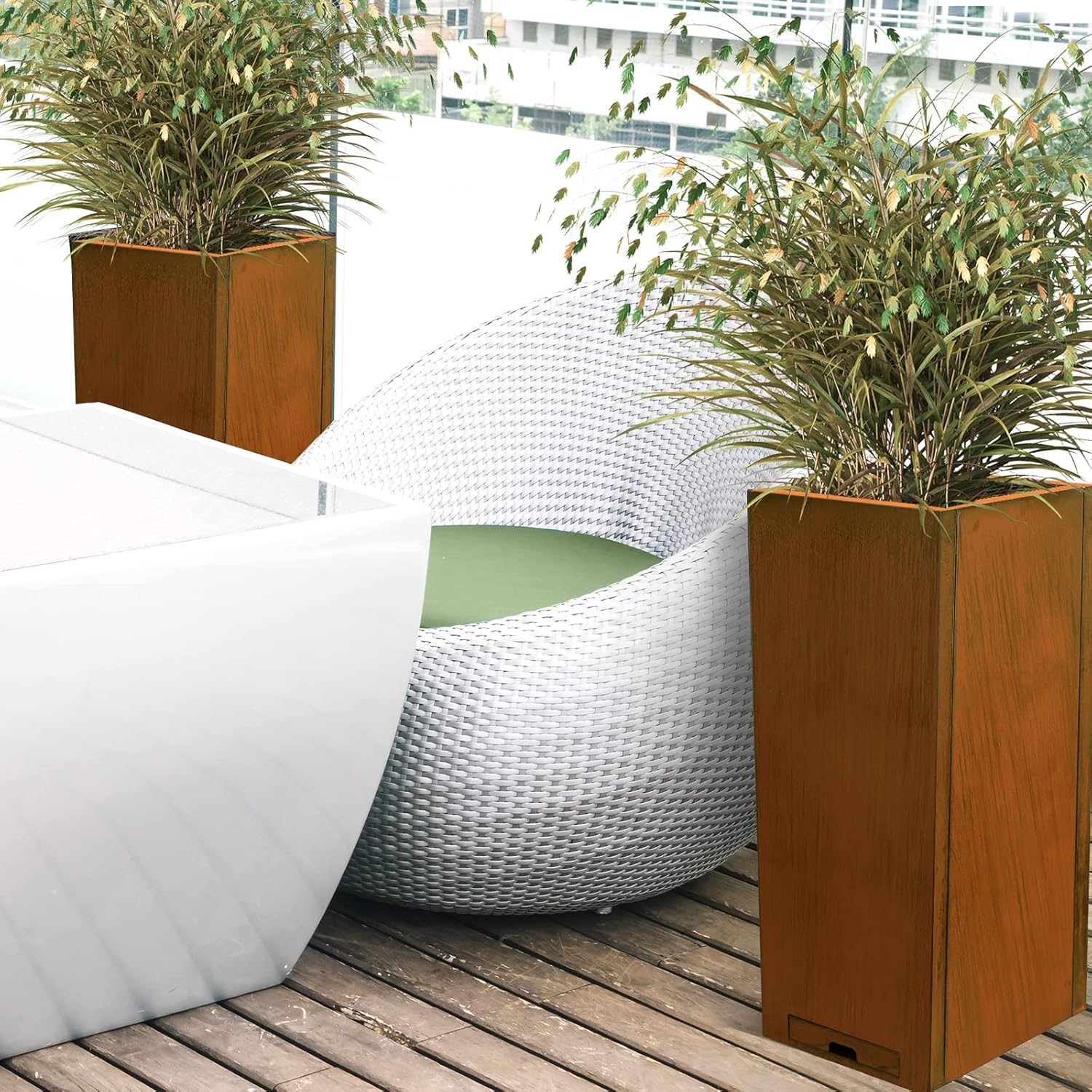 - Pre-Rusted Finish: This planter features a pre-rusted steel finish, so you donโt have to wait for the beautiful rusted patina to form; The natural, weathered look, inspired by Corten Steel, adds a unique charm to your landscape; Whether in the garden, patio, or backyard, this planter is perfect for growing flowers, vegetables, or herbs