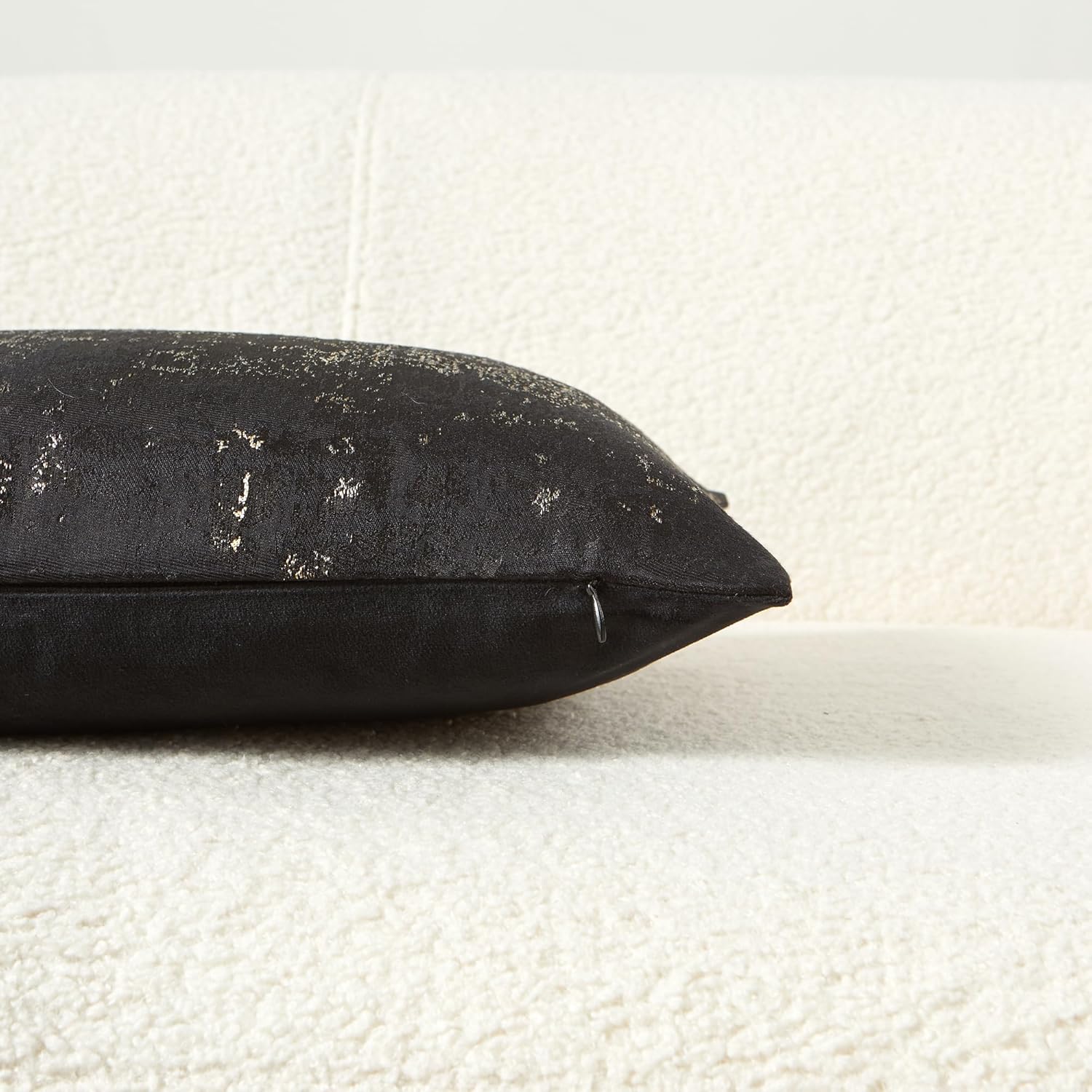 - Premium Jacquard & Velvet Pillow Cover : Crafted with luxe 70% polyester 30% viscose jacquard weave in Black & Gold - featuring elegant gold metallic threads woven through rich black fabric for a soft glowing contrast. The reverse features 100% polyester cream beige velvet in sumptuous cloud-soft texture. Two looks in one - Perfect for Luxury minimalist interiors seeking refined accents.