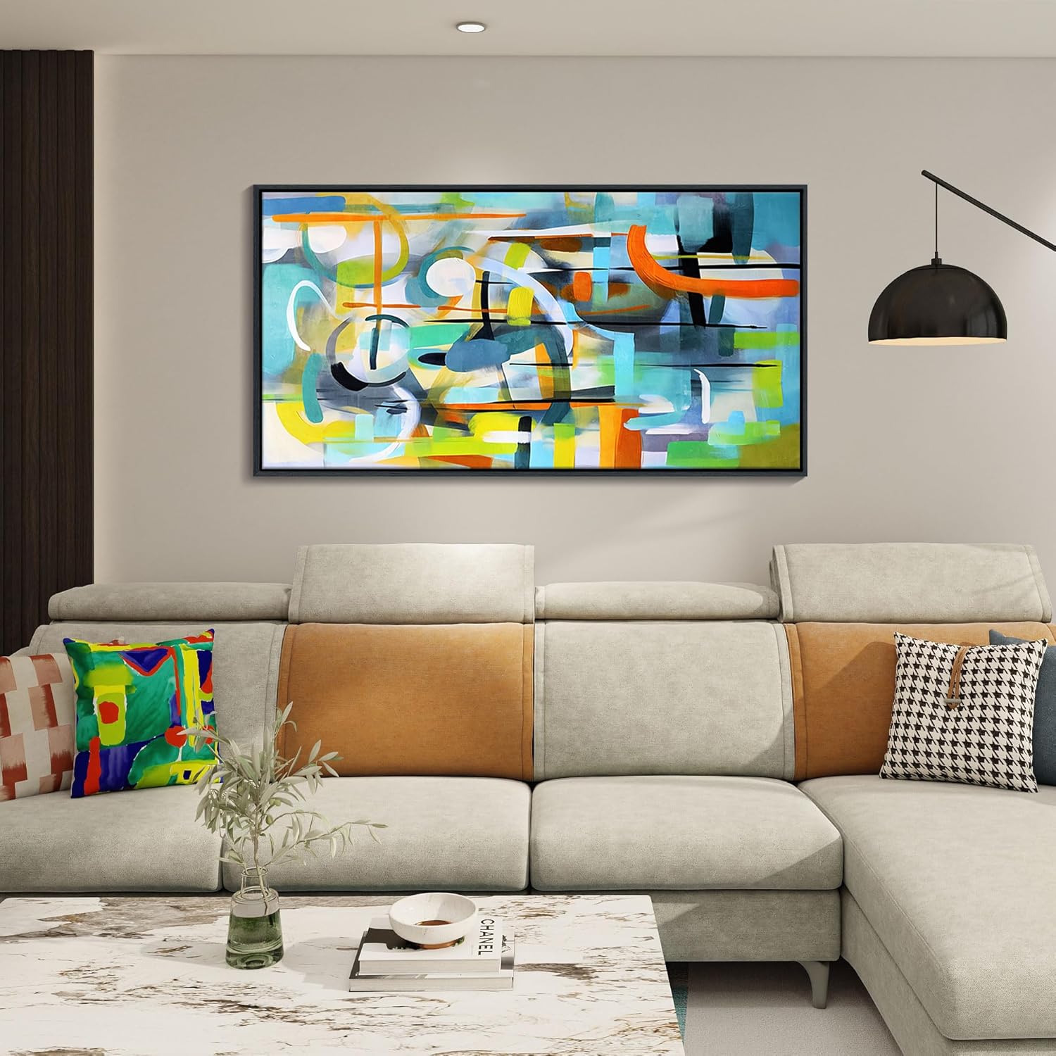 Mofutinpo Abstract Wall Art- Framed Modern Colorful Canvas Wall Pictures-Teal And Blue Line Art -Pictures for Living Room Wall Decoration- Graffiti Paintings for Bedroom-Office Wall Decor 24×48IN