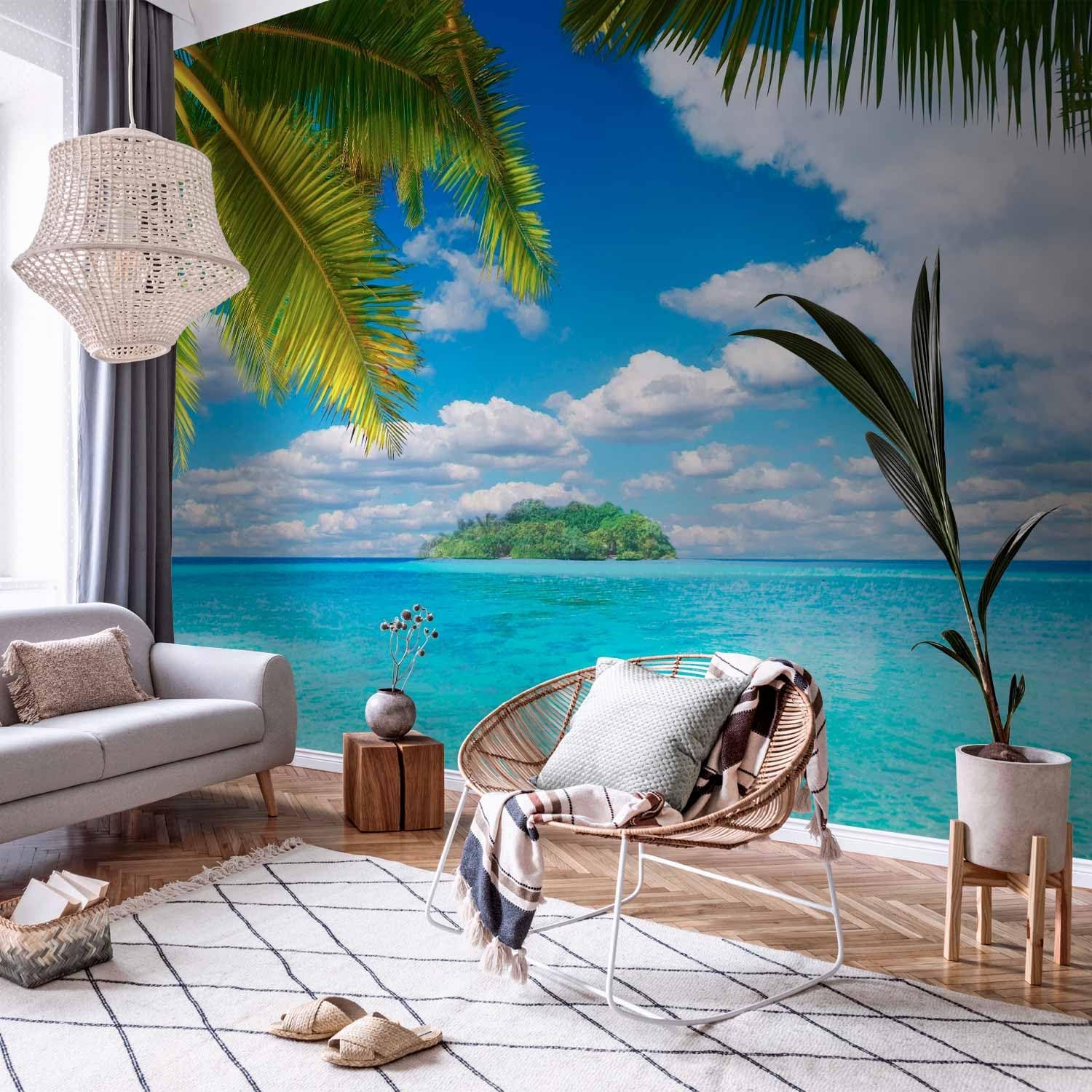 artgeist Wall Mural Nature 216x98 in - XXL Non-Woven Corner Wallpaper Fleece Angle Wall Decor Photo Print Picture Holiday Lagoon Palms n-A-10068-a-a
