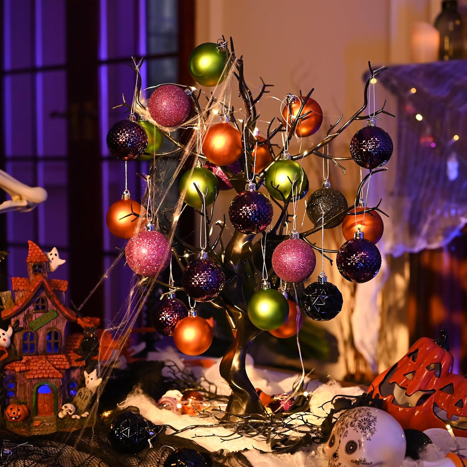 Valery Madelyn Christmas Tree Decorations Ornament Set for Fall Halloween, 50ct 2.36 Inches Orange Purple Black Shatterproof Christmas Ball Ornaments Hanging Xmas Holiday Party Decor