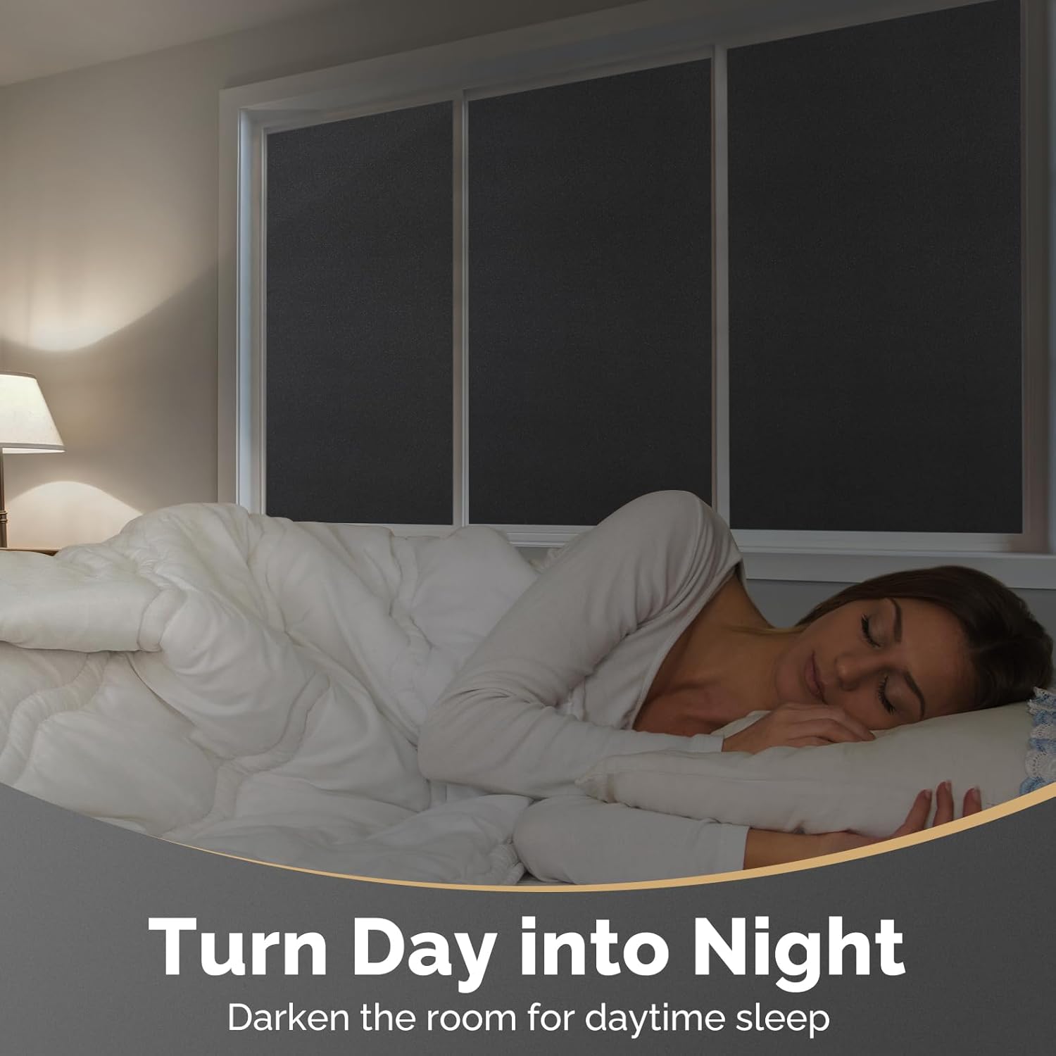 - 100% Light Blocking: Whether it's day or night, the blackout window films effectively block out bright light, creating a peaceful and comfortable haven for your home or office and protecting you from irritating sunlight and harmful artificial light. Not only does this promote better sleep and increased productivity, but it also helps reduce stress and improve quality of life