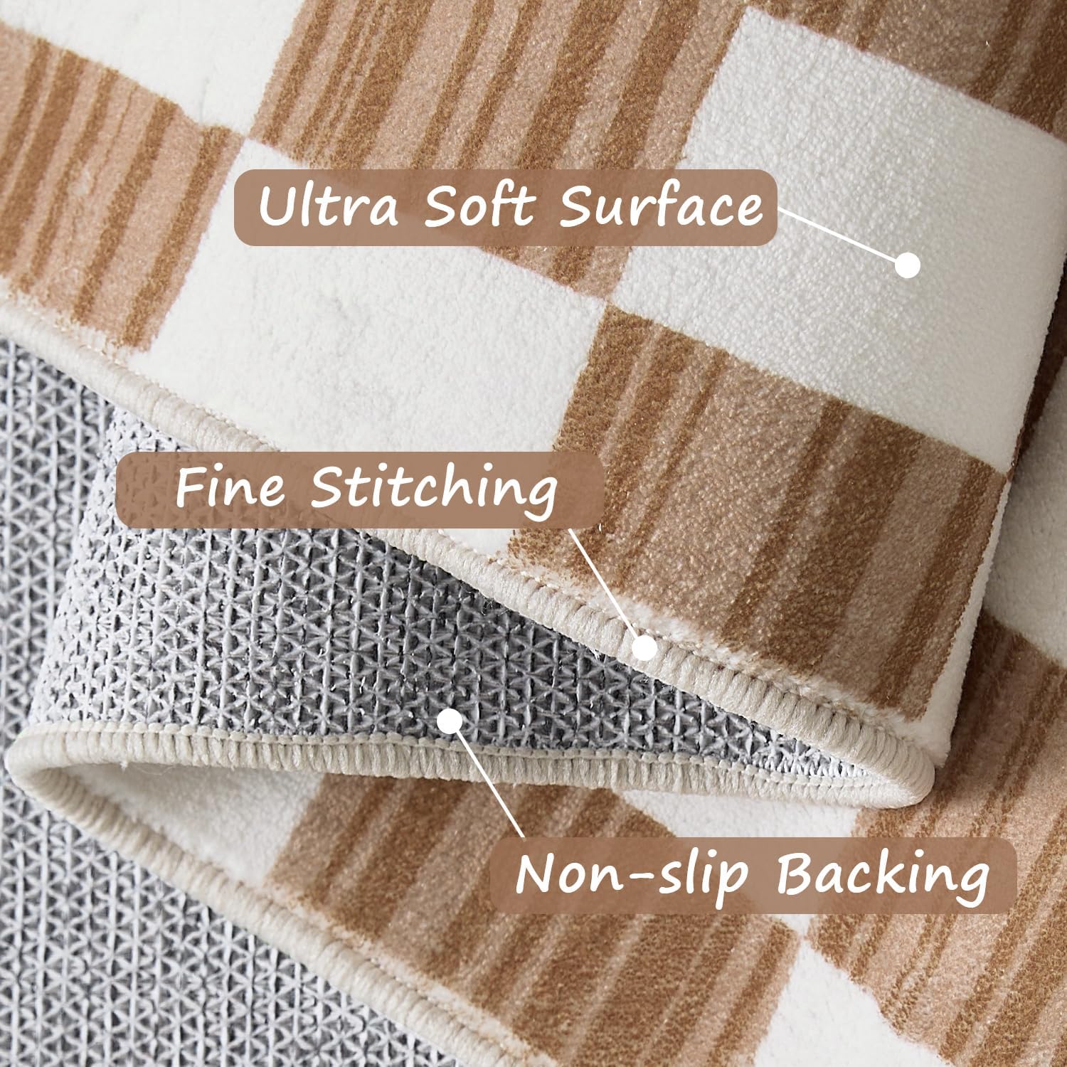 jinchan Runner Rug 2x6 Hallway Washable Modern Checkered Geometric Lattice Kids Bedroom Rug Indoor Floor Cover Non Slip Soft Carpet for Nursery Room Kitchen Laundry Room Home Brown