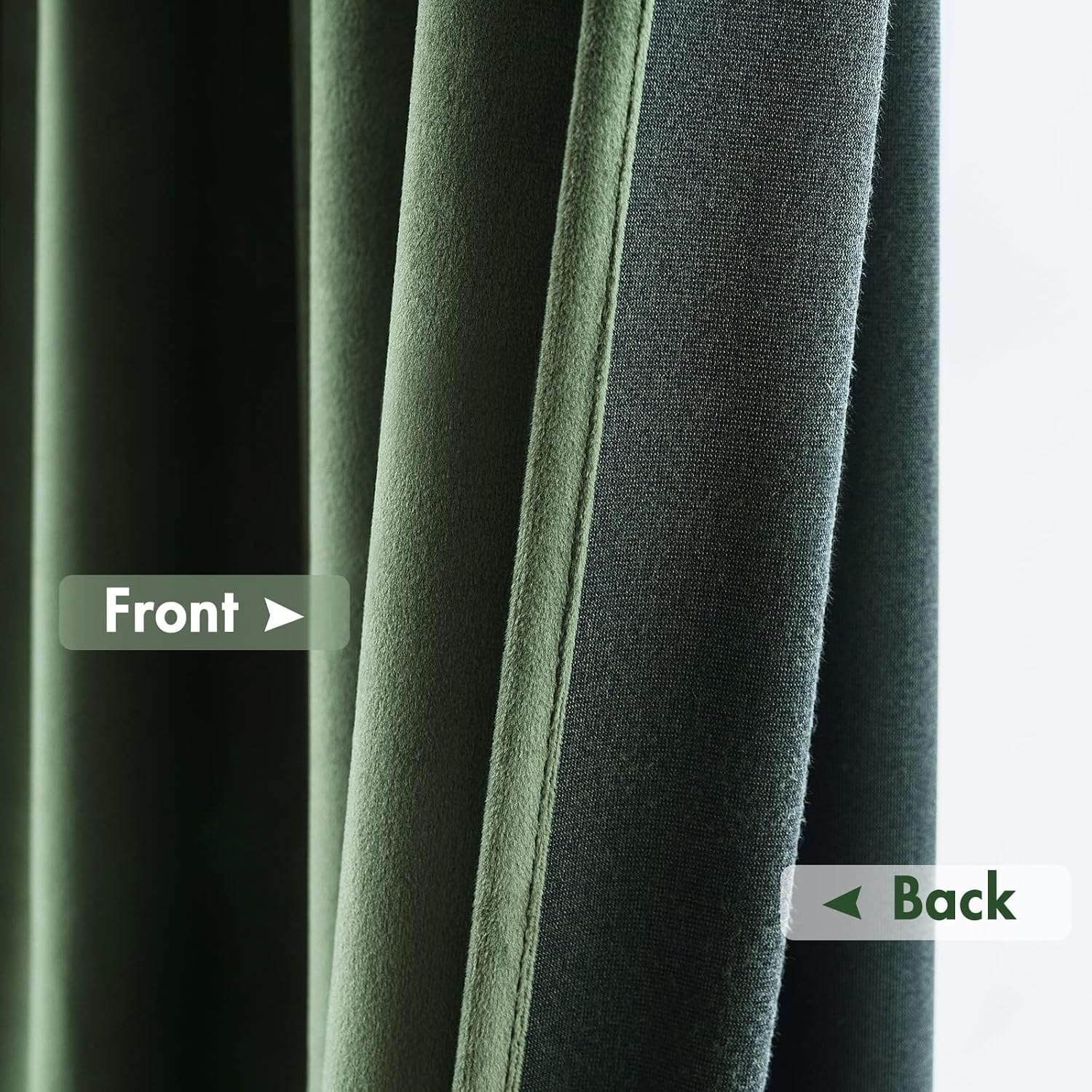MIULEE Olive Green Velvet Curtains Thermal Insulated Blackout Curtain Drapes for Bedroom Living Room Darkening 105 Inches Long Curtains Panels Rod Pocket Set of 2