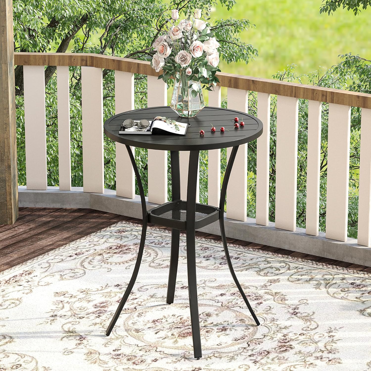 VICLLAX 28" Round Outdoor Bar Table, Counter Height Patio Table with Adjustable Umbrella Hole for Balcony, Black
