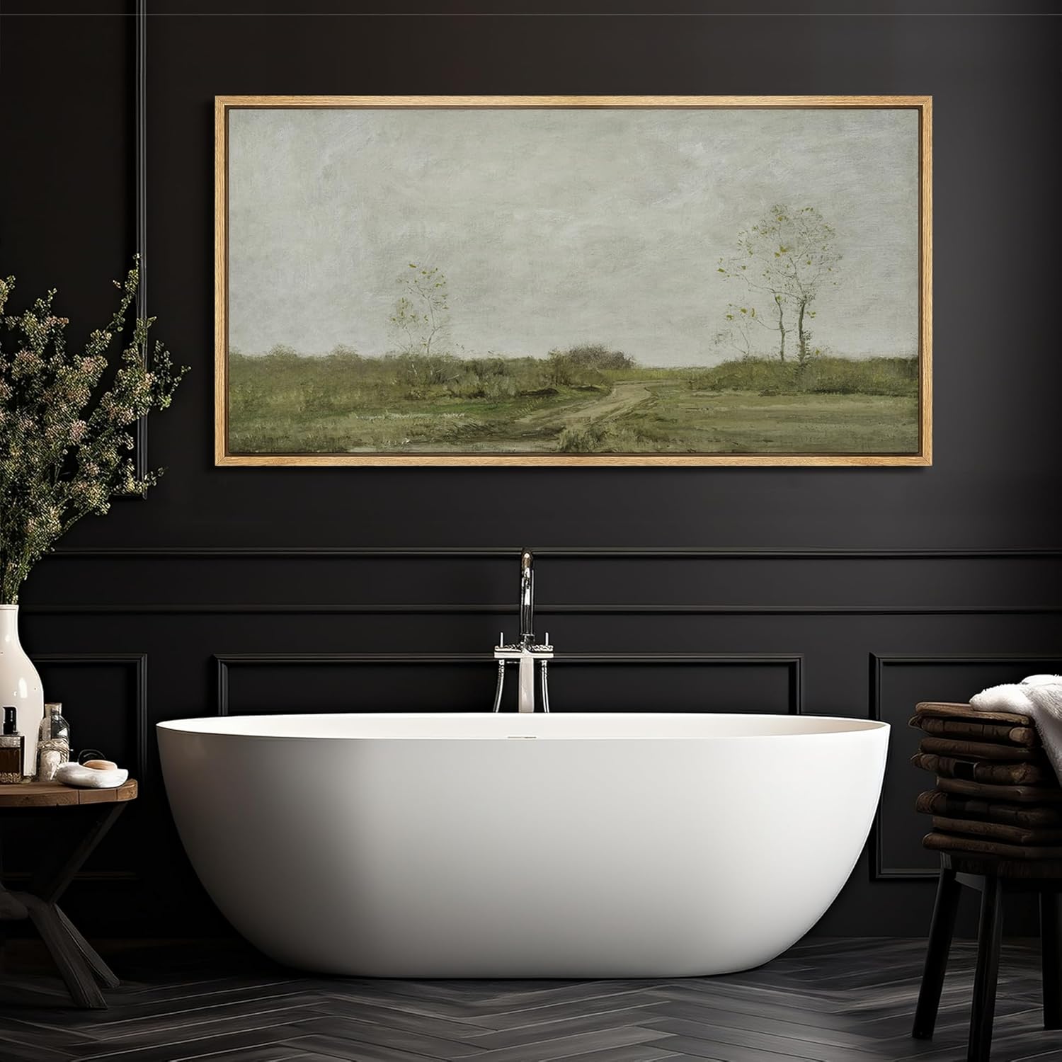 MUDECOR Extra Large Framed Canvas Print Wall Art Soft Pastoral Landscape Wall Art with Trees Antique Retro Fine Art Illustrations Decorative Colorful for Bedroom - 60"x30"