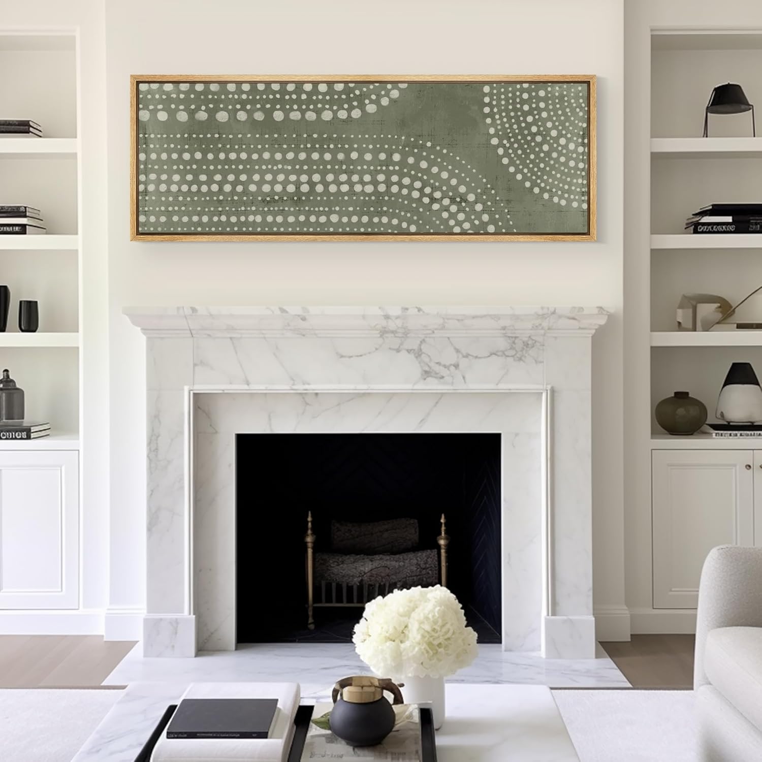 MUDECOR Large Framed Canvas Print Wall Art Abstract Dot Matrix Canvas Art in Olive Tones Antique Retro Fine Art Illustrations Decorative Colorful for Bedroom - 60"x20"