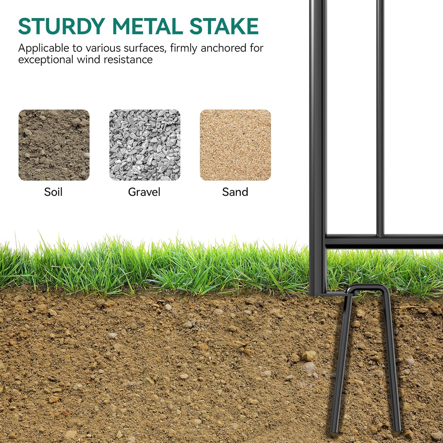 - Durable & Stable: Sturdy steel tubing is treated with weather-resistant black epoxy to ensure stability and prolonged outdoor use; The reinforced supporting frame at the bottom features ground stakes so that the garden arch can withstand weather elements.
