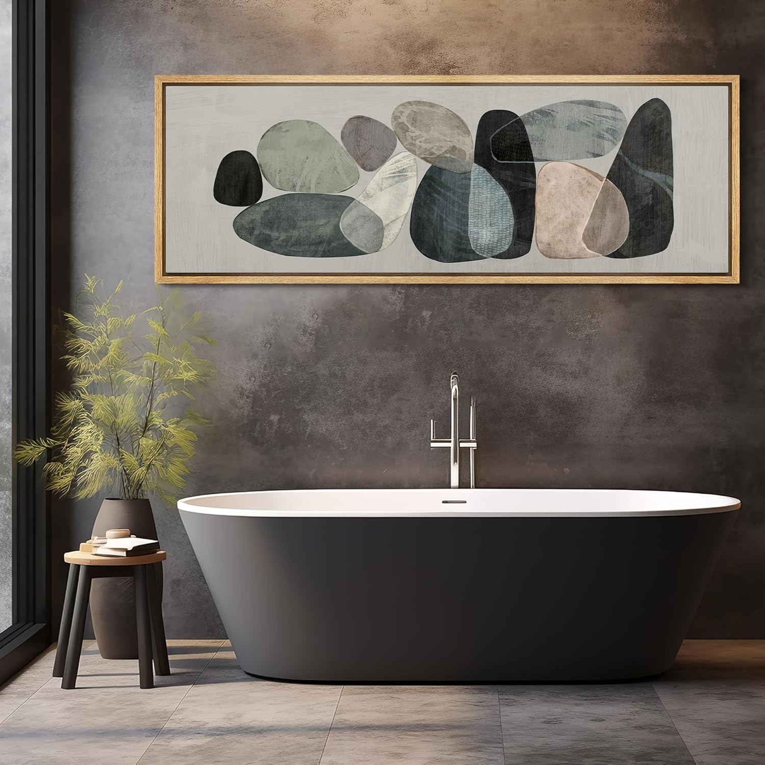 MUDECOR Large Framed Canvas Print Wall Art Abstract Elegance Contemporary Stone Shapes Illustrations Antique Retro Fine Art Illustrations Decorative Colorful for Bedroom - 60"x20"