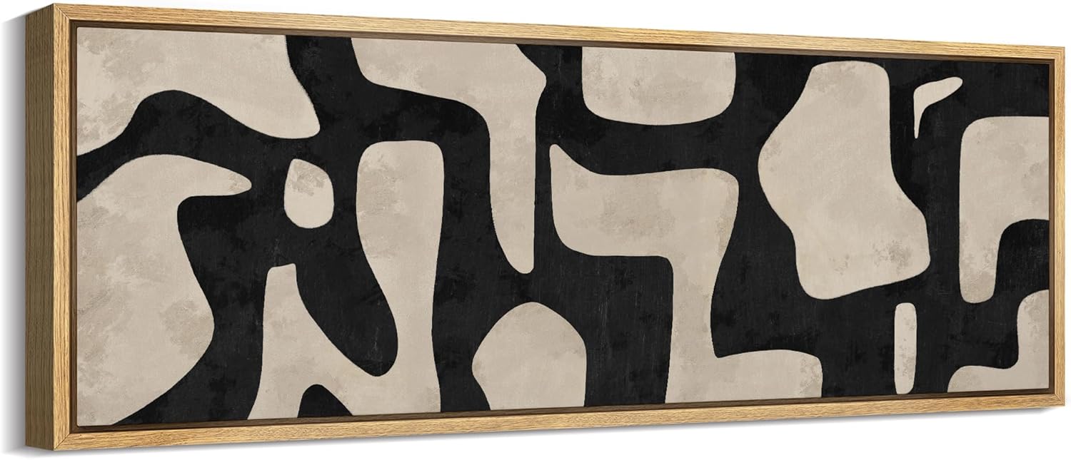 MUDECOR Large Framed Canvas Print Wall Art Abstract Contours Black and White Illustrations Antique Retro Fine Art Illustrations Decorative Colorful for Bedroom - 60"x20"