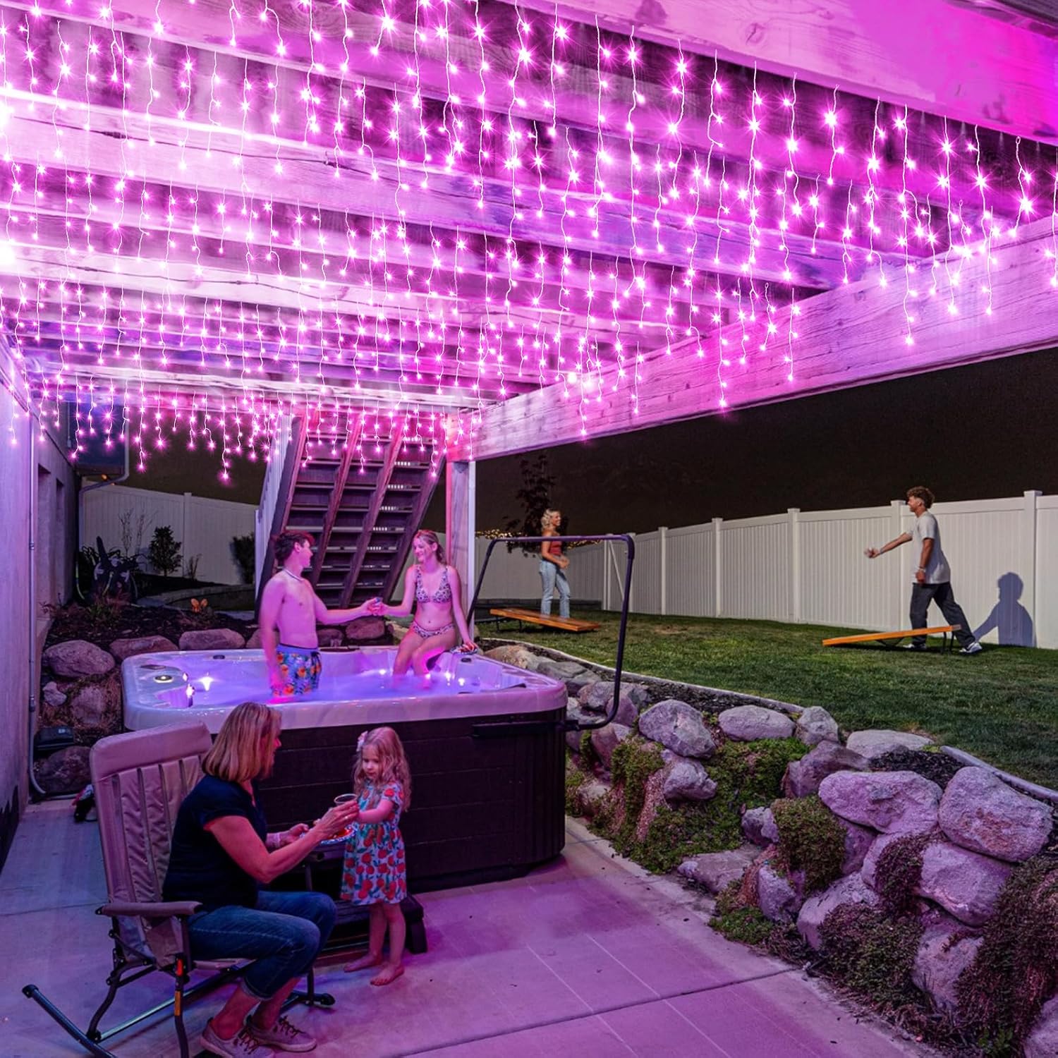- π LED Icicle Christmas Lights: 400LED pink Christmas lights totally length is 43ft, including 33ft icicle lights and 10ft extension cord. The outdoor Christmas lights can be connected up to 3 sets to decorate larger areas, suitable for use throughout the year - birthdays, anniversaries, Christmas decoration. The connectable icicle lights can be controlled by one button on the power adapter. Hang these fairy string lights outdoor indoor to create warm and romantic atmosphere for you.