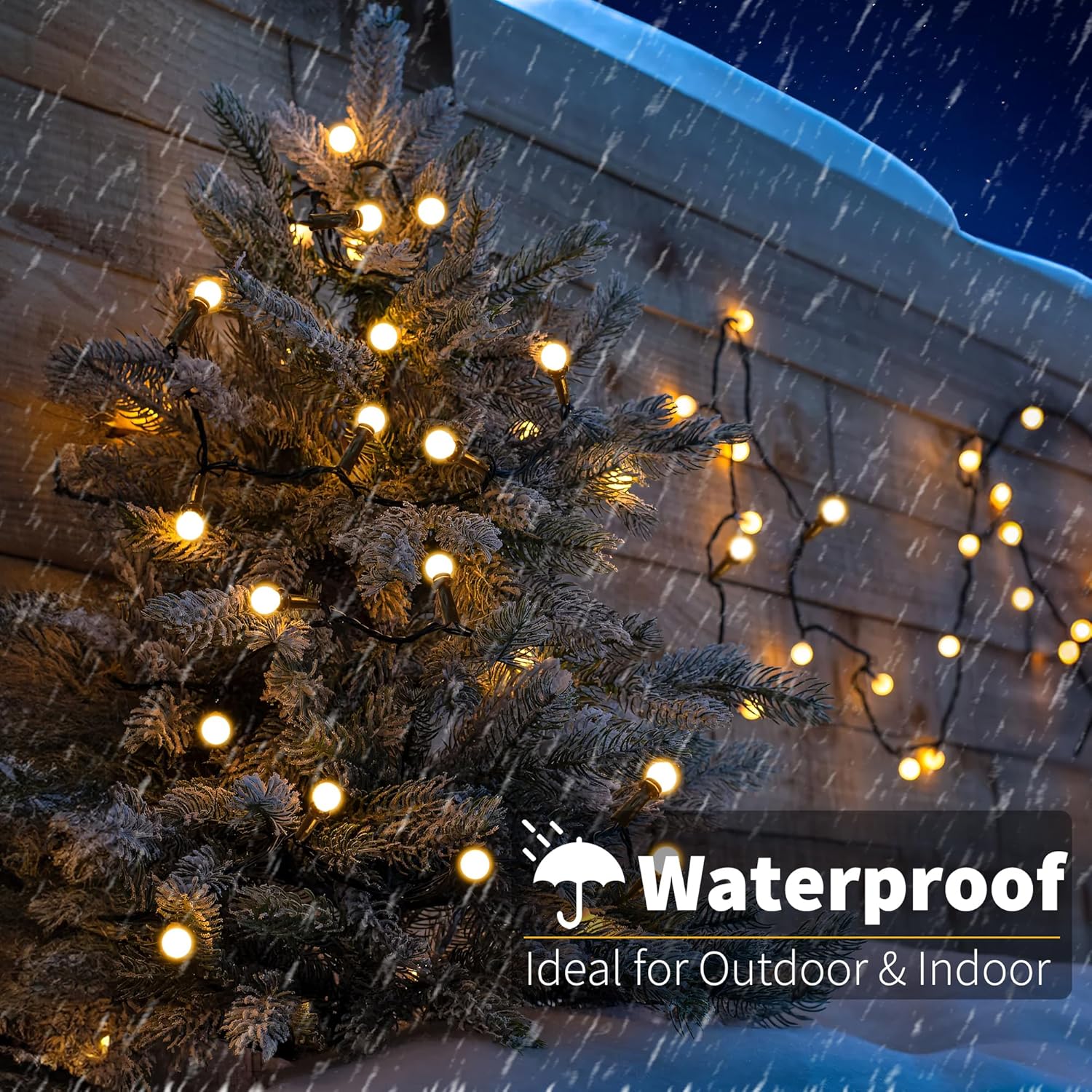 - IP44 Waterproof Outdoor Christmas Lights: These outdoor string lights are waterproof, durable and weather-resistant, making them perfect for indoor & outdoor use. They're versatile, easy to maintain, and add a charming ambiance to any setting, whether it's for a party or everyday enjoyment. Plus, they provide peace of mind with their safety features, ensuring you can enjoy them worry-free in any weather. Perfect to enhance the ambiance of your outdoor spaces, such as patios, decks, balconies, or gardens.