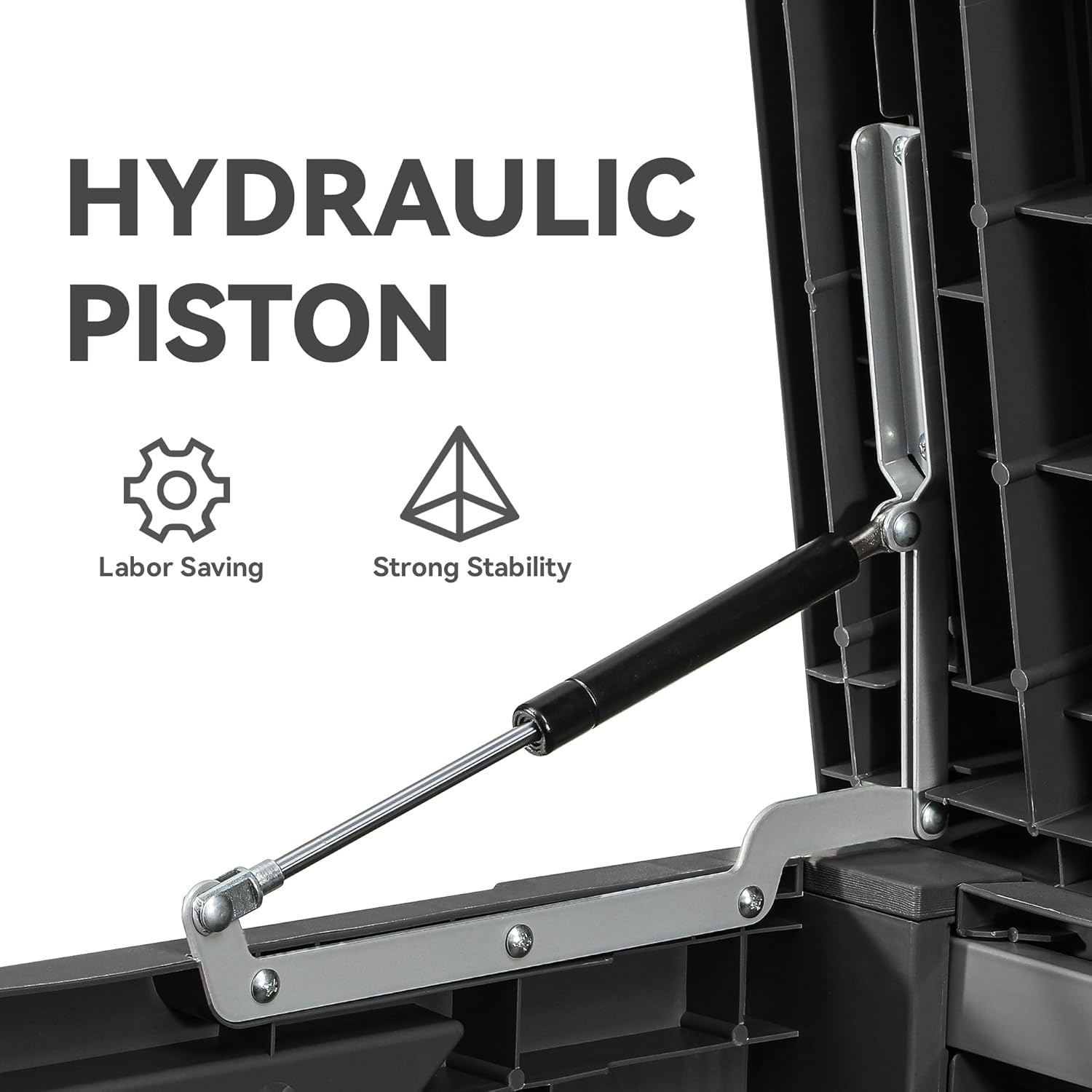 - HYDRAULIC PISTONS: Easy lift and soft close mechanism pulls the top completely open and shut slowly with minimal effort - easy for people to use and no smashed fingers