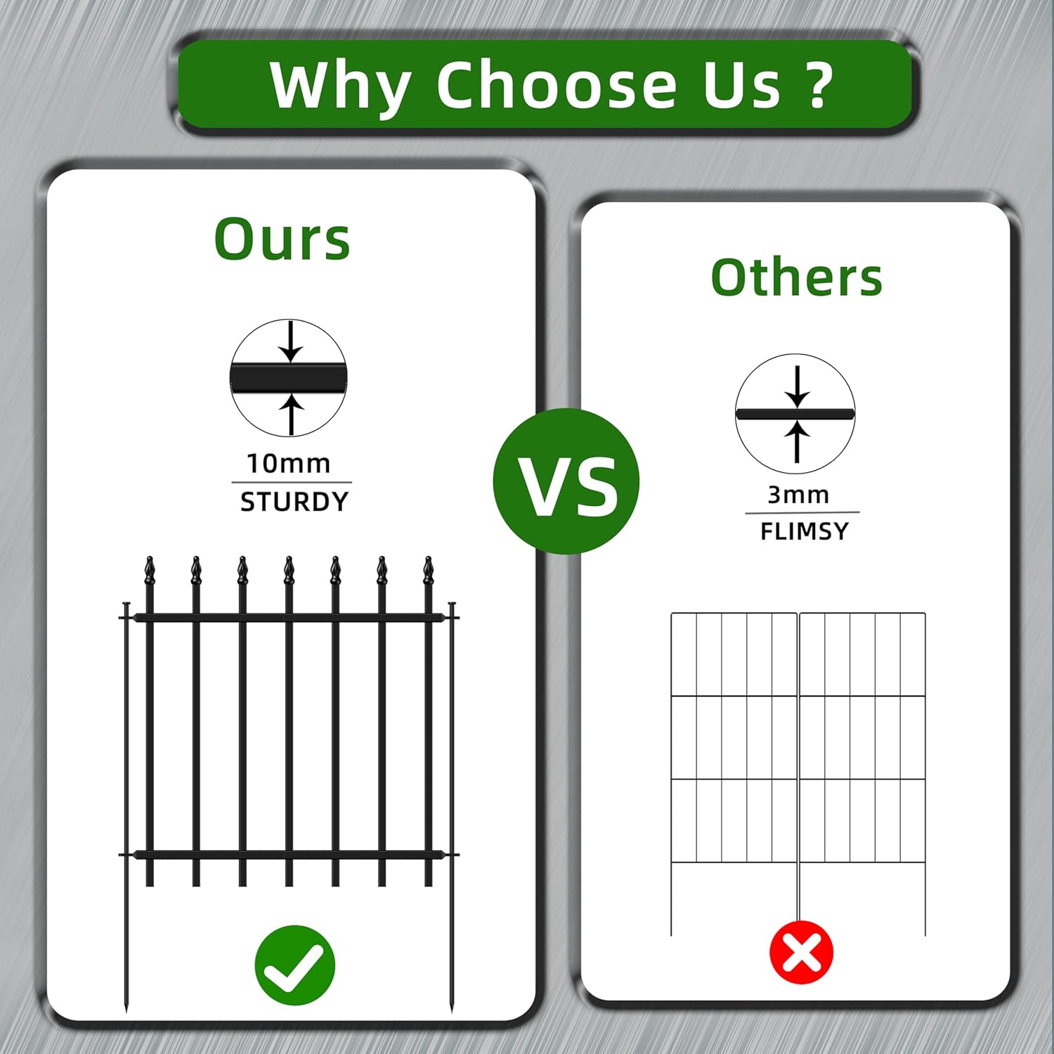 - STURDY STRUCTURE:This Forehogar garden border fence is welded by 0.4x0.4inch high quality steel tubes, they are very sturdy. The stakes are 8mm diameter, and they can be extended pretty far into the ground which link fence sections closely and stable standing. It works perfect as a garden fence border.