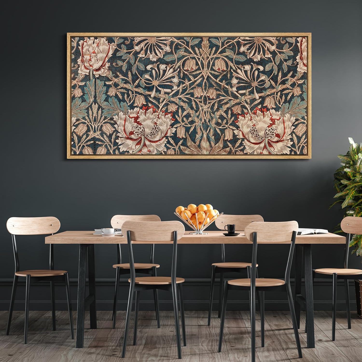 MUDECOR Extra Large Framed Canvas Print Wall Art Botanical Elegance Victorian Style Floral Antique Retro Fine Art Illustrations Decorative Colorful for Bedroom - 60"x30"