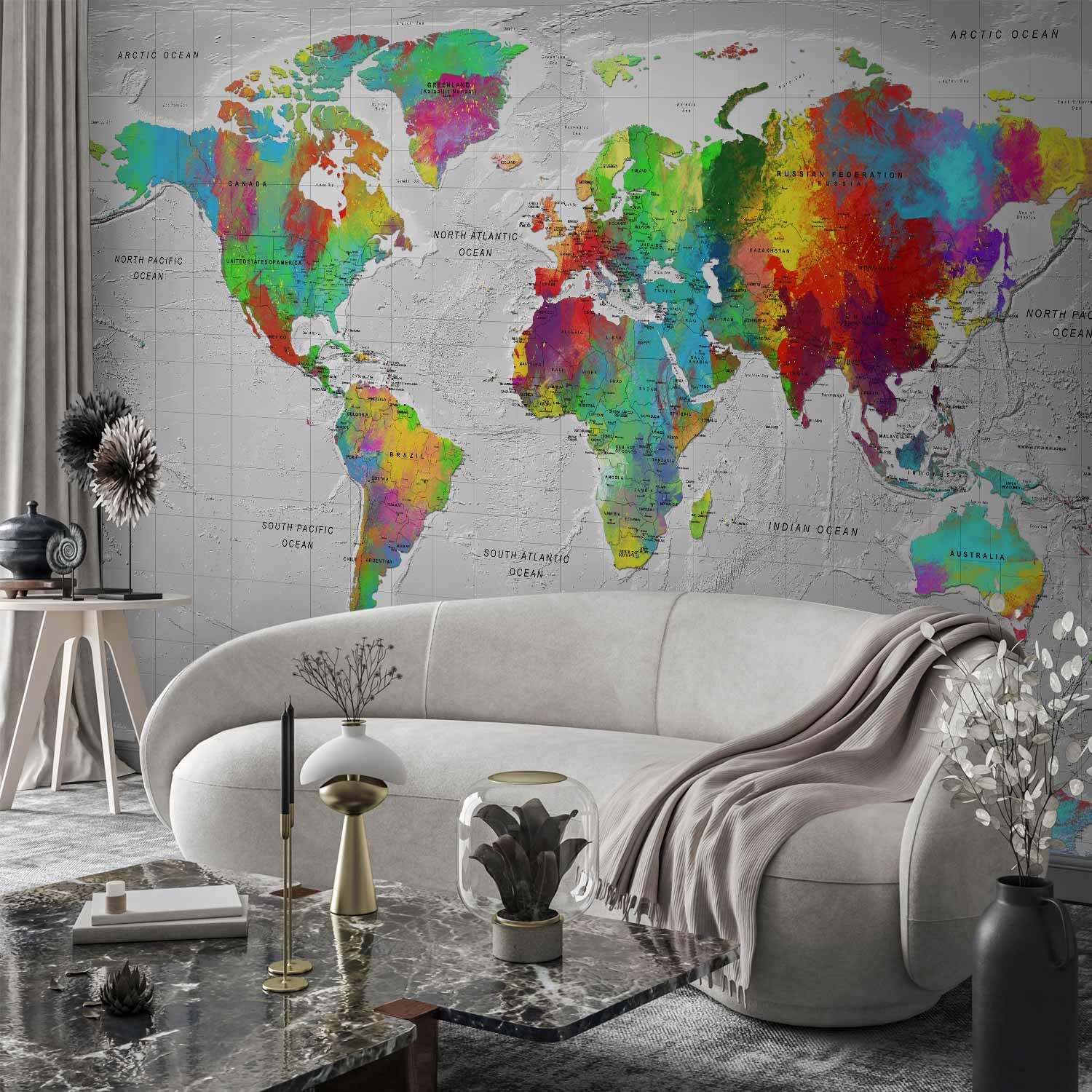 artgeist Wall Mural World Map 193x138 in - XXL Peel and Stick Self-Adhesive Wallpaper Removable Large Sticker Foil Wall Decor Print Picture Image Design Map of The World k-A-0128-a-a