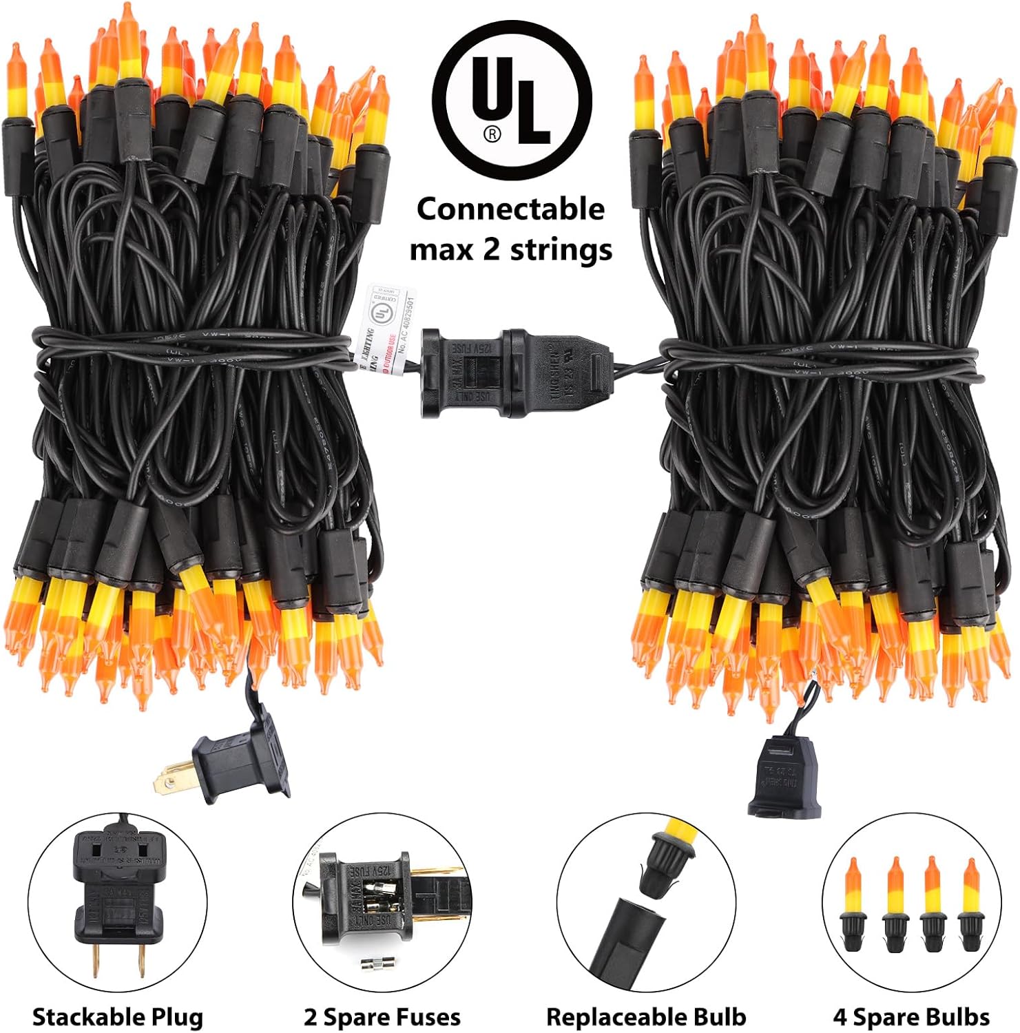 - End-to-End Connectable & Easy to Install: Each Halloween string light features a male and a female safe plug, an easy end-to-end connection allows up to 2 strands (150ft in total) connected together to illuminate a wider range. Just hang the string light on wherever you like, power on, you will get a charming night with these bright lights!