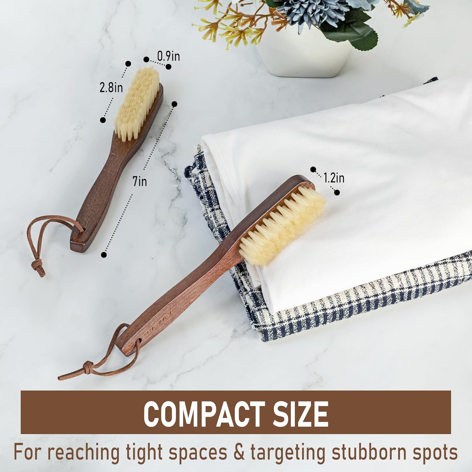 - Natural white boar bristles: Ideal for light-colored fabrics! These firm-yet-gentle natural boar bristles provide effective scrubbing power against grime but are less abrasive than harsh synthetics, minimizing damage to weaves like cotton, linen, denim, and blends