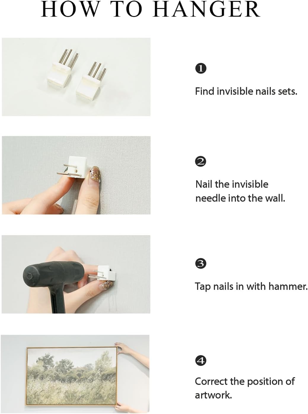 - READY TO HANG: This framed canvas art wall decor comes with 2 hooks which makes it easy to hang. Please read the installation instruction image before nailing the hook on your wall. (This item is handmade, so please allow the size error to be about 0.2 inches)
