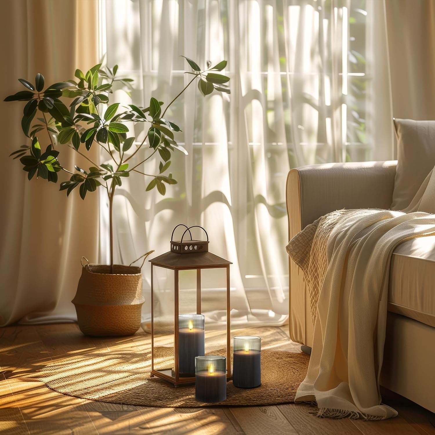 - Ribbed Glass Flameless Candles - Our battery candles are carefully crafted from real wax with unique ribbed glass shell. These electric candles look similar to traditional candles, but do not emit pungent odors and are safer