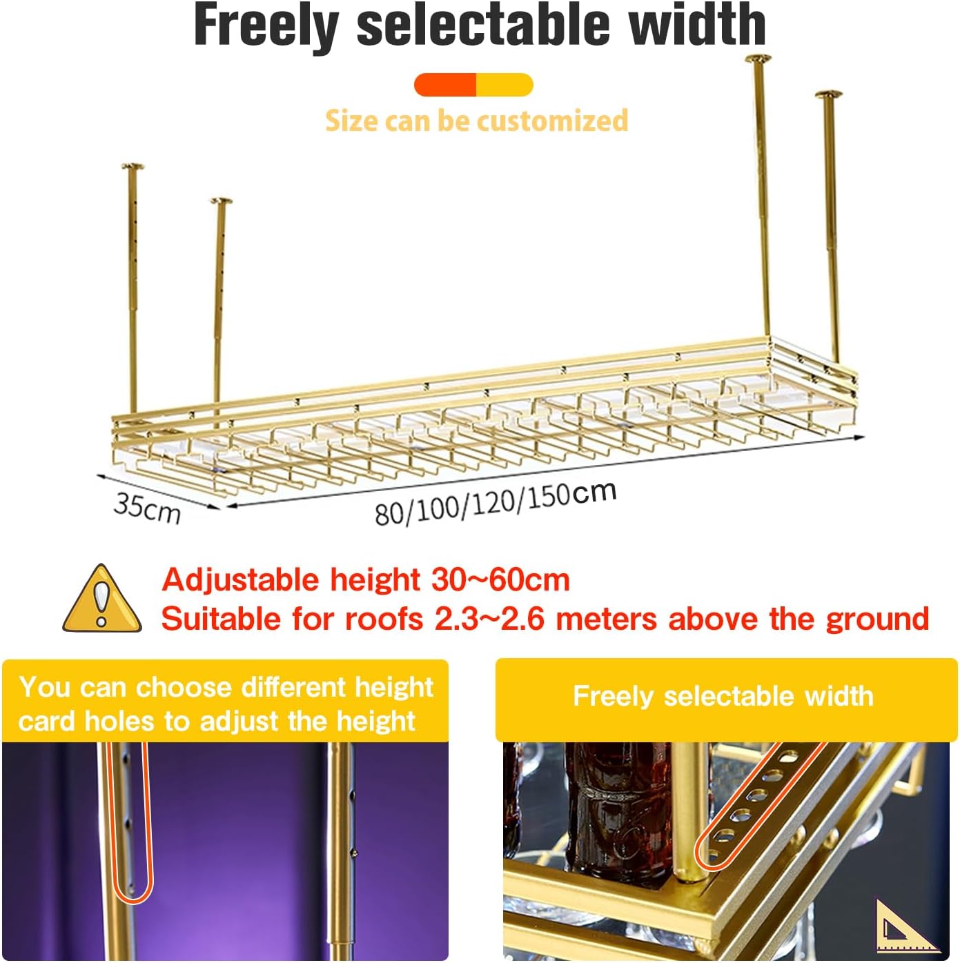 Ceiling Wine Rack&Hanging, Adjustable Hanging Wine Rack with Acrylic Board for Bar Cafe Kitche, 39.4''x13.8'' Iron Hanging Wine Glass Racks, Wine Bottle, Goblet Stemware Rack, Mug Rack-Gold