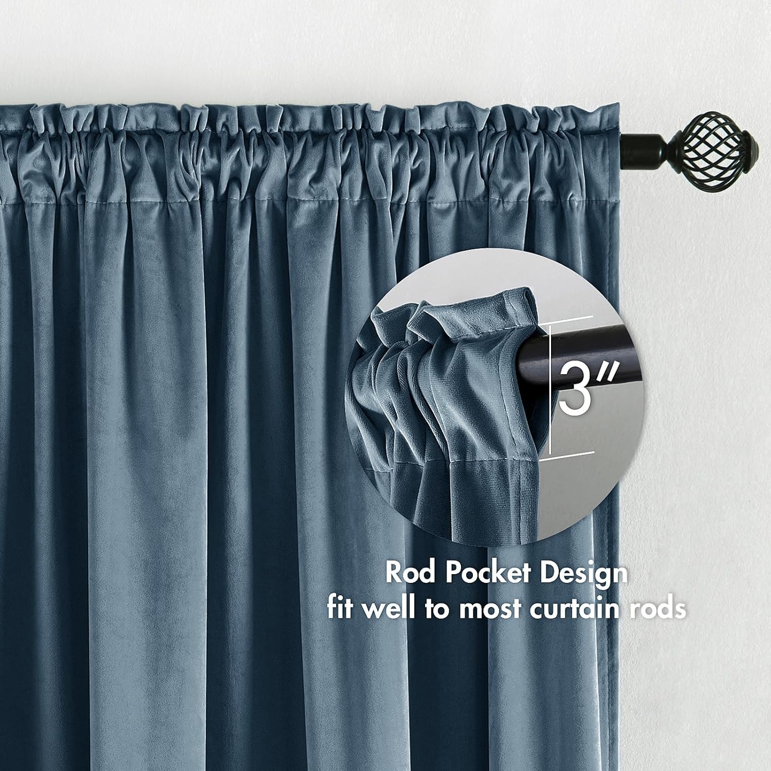 MIULEE Dark Slate Velvet Curtains Thermal Insulated Blackout Curtain Drapes for Bedroom Living Room Darkening 84 Inches Long Curtains Panels Rod Pocket Set of 2