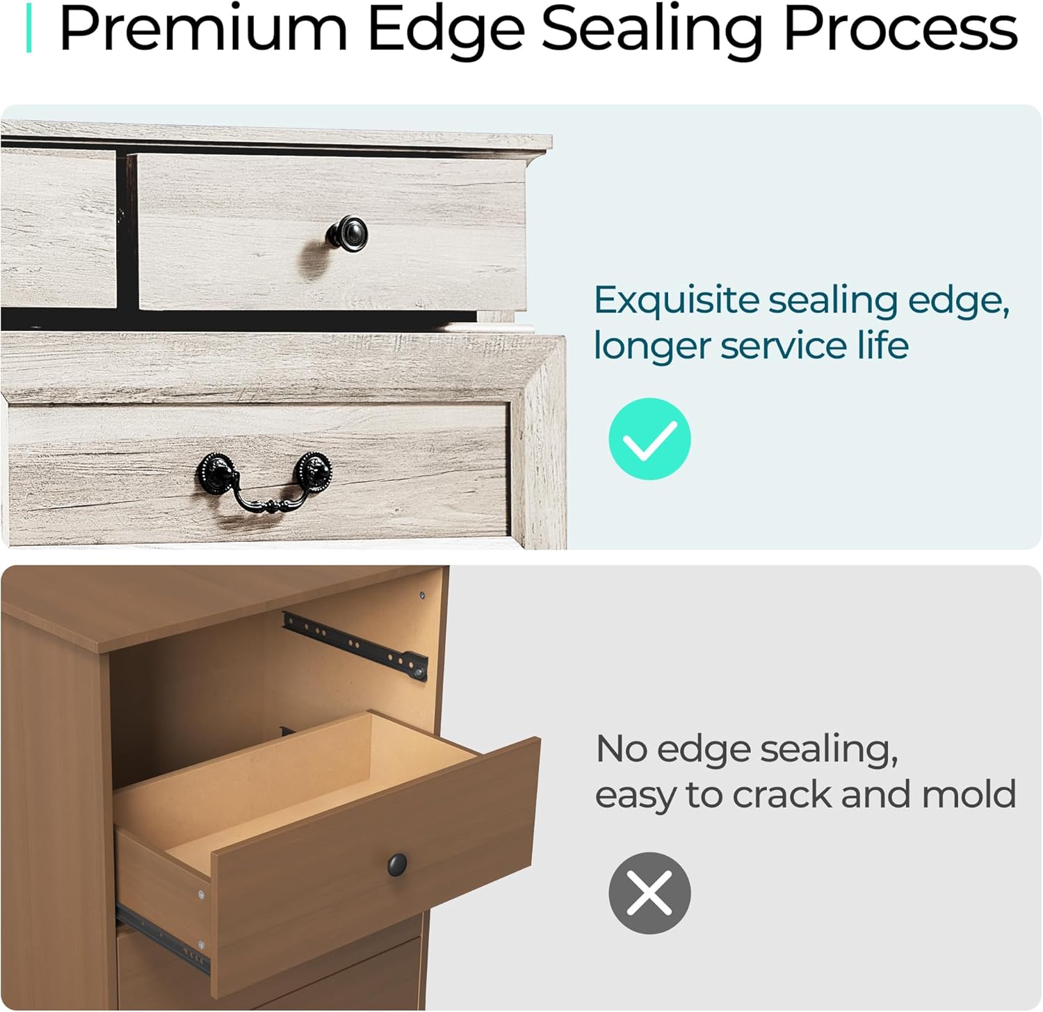 - [PREMIUN MATERIAL] - Crafted with CARB P2 & TSCA certified eco-friendly manufactured wood, we do care about your health. Exquisite sealing process gives the dresser a waterproof surface and smooth texture, making it long-lasting.