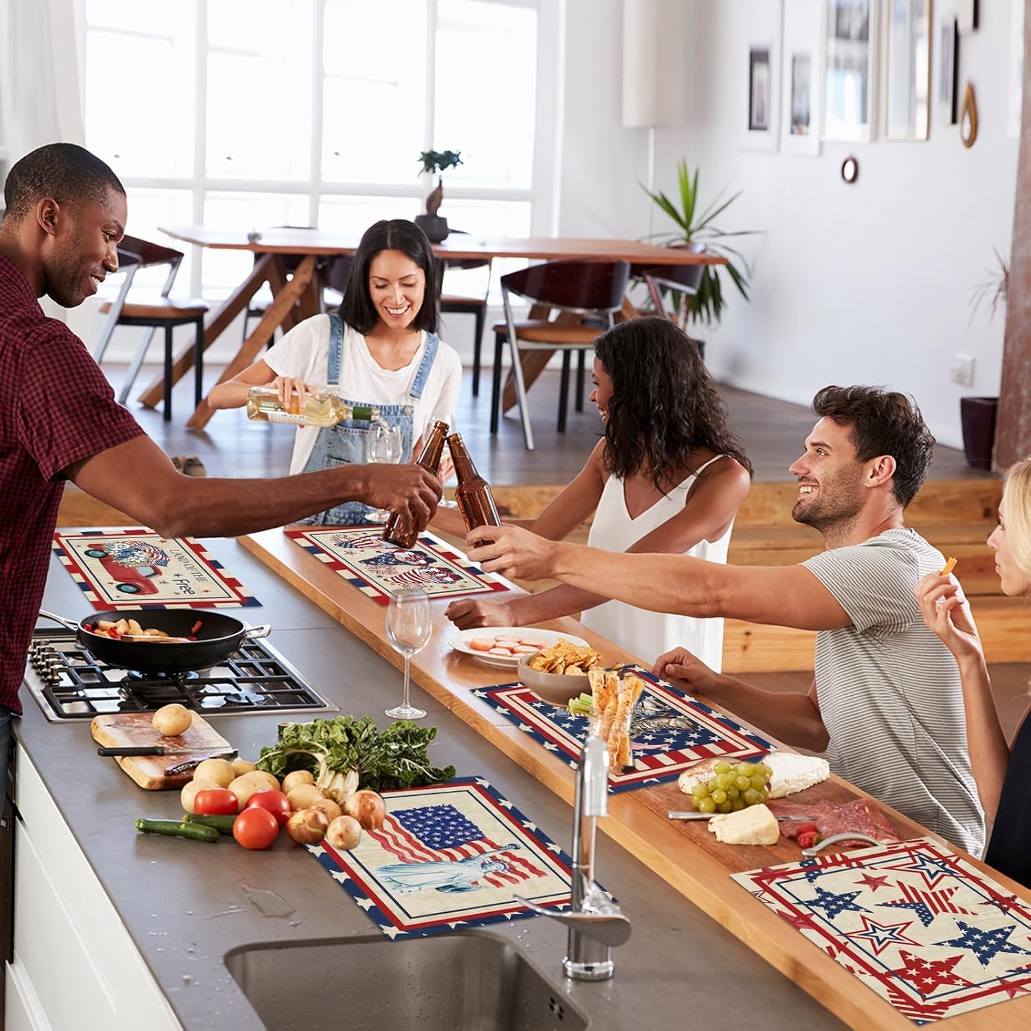 - Easy cleaning: Vintage fourth of july placemats set of 6 decorations sets are designed for easy cleaning to save you from the hassle of washing the patriotic placemat covered with grease. You only need to wipe them easily with a damp cloth, making you spend more time enjoying a happy time with your family and friends.